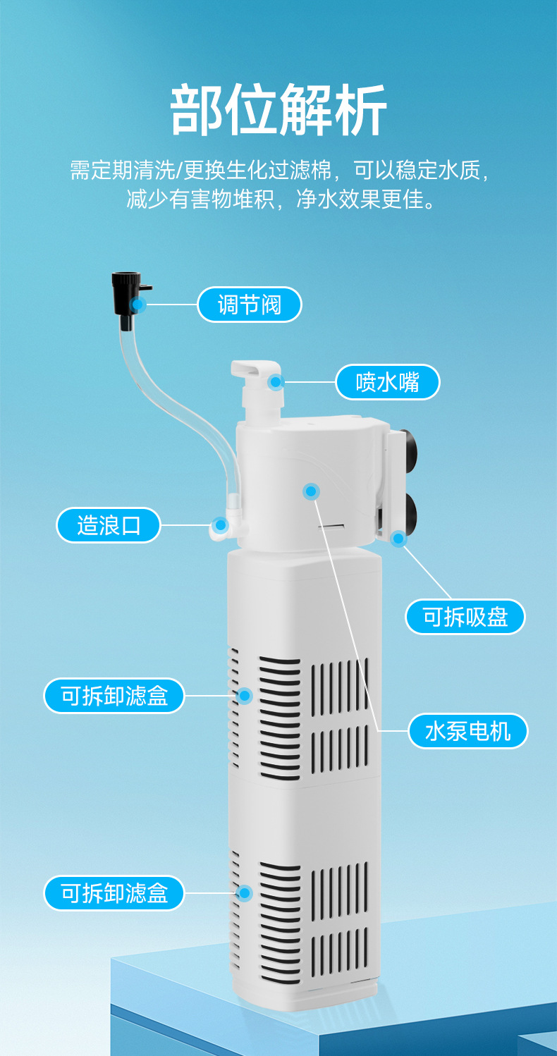 Jinlijia 수조 필터 순환 펌프 3-in-1 산소 웨이브 수족관 내장 자동 소형 워터 펌프