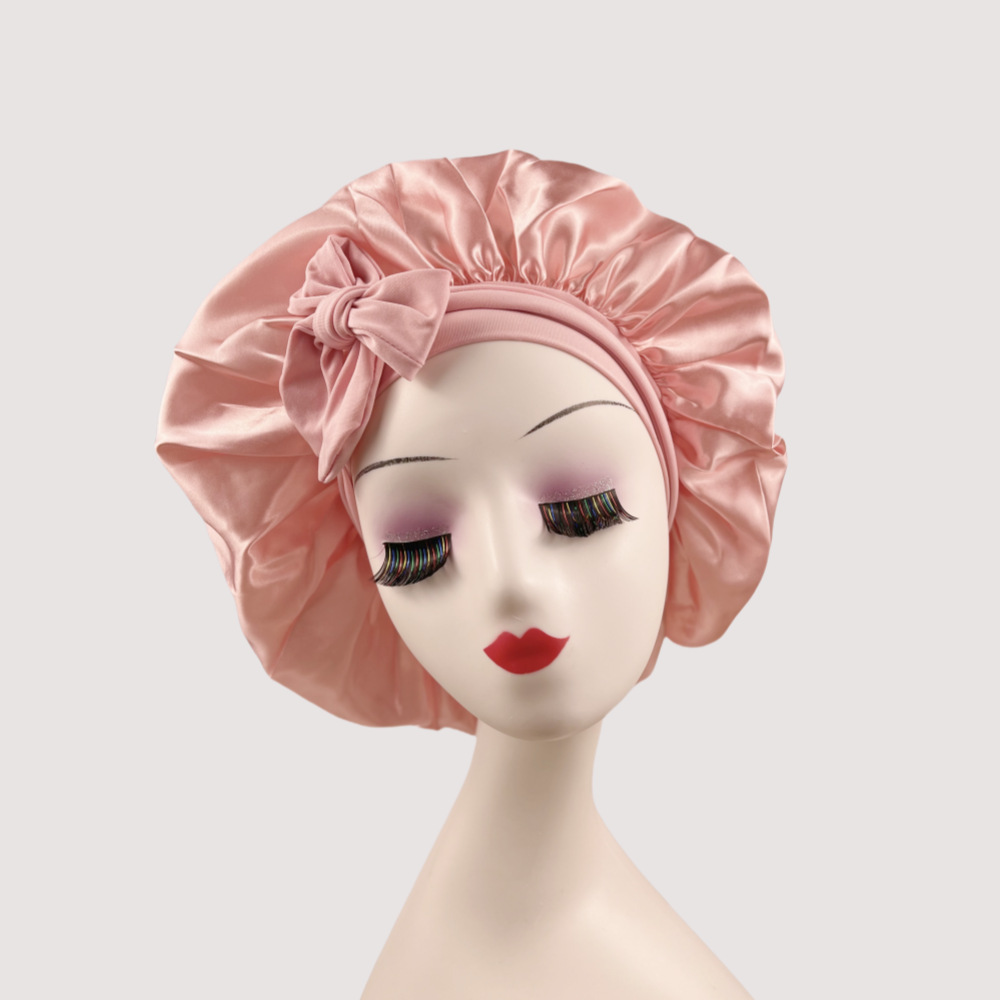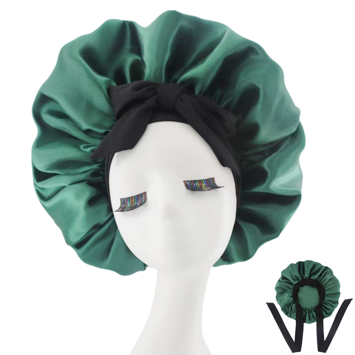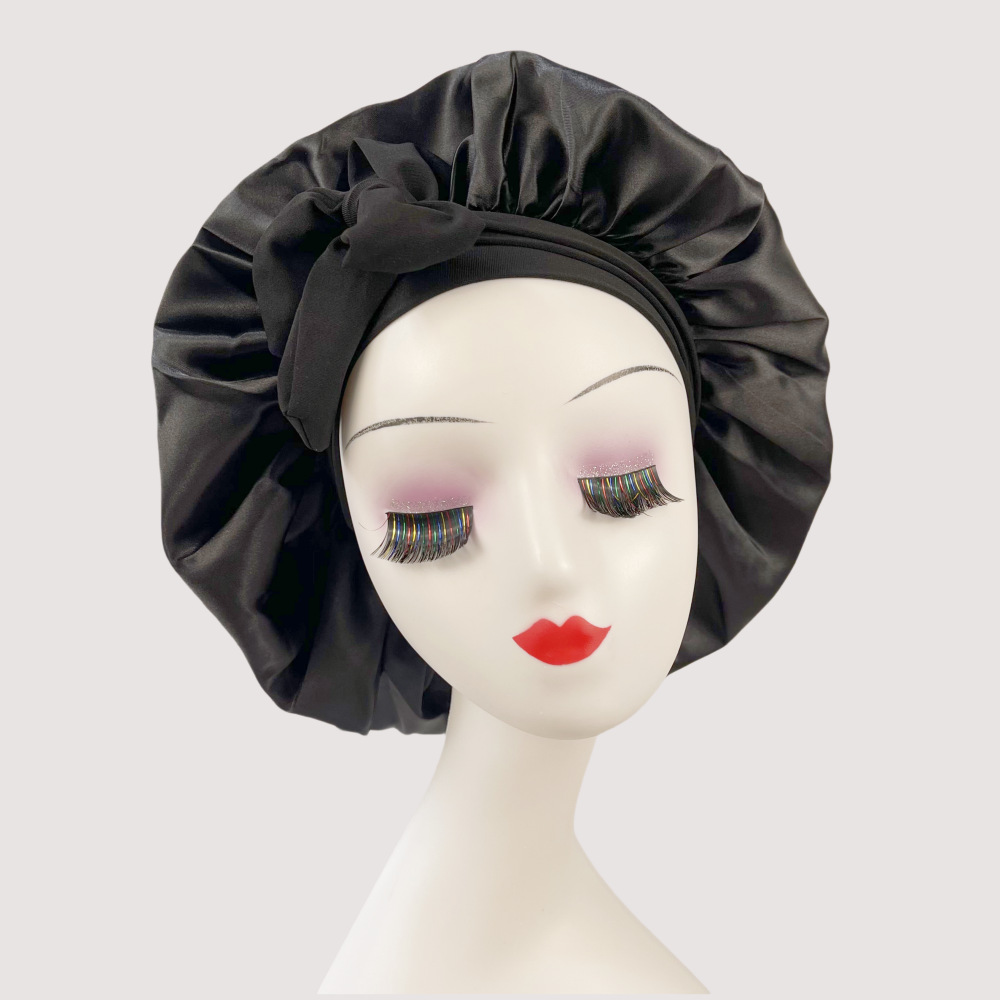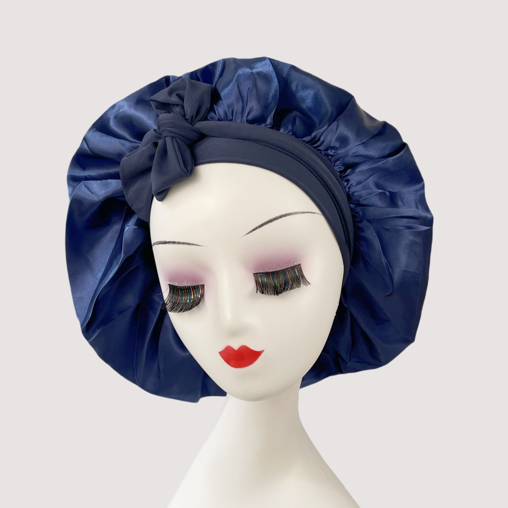 국경을 넘나드는 유럽과 미국의 인기 단색 스트랩 수면 모자 탄성 넓은 챙 새틴 보우 라운드 모자 헤어 케어 모자 샤워 캡