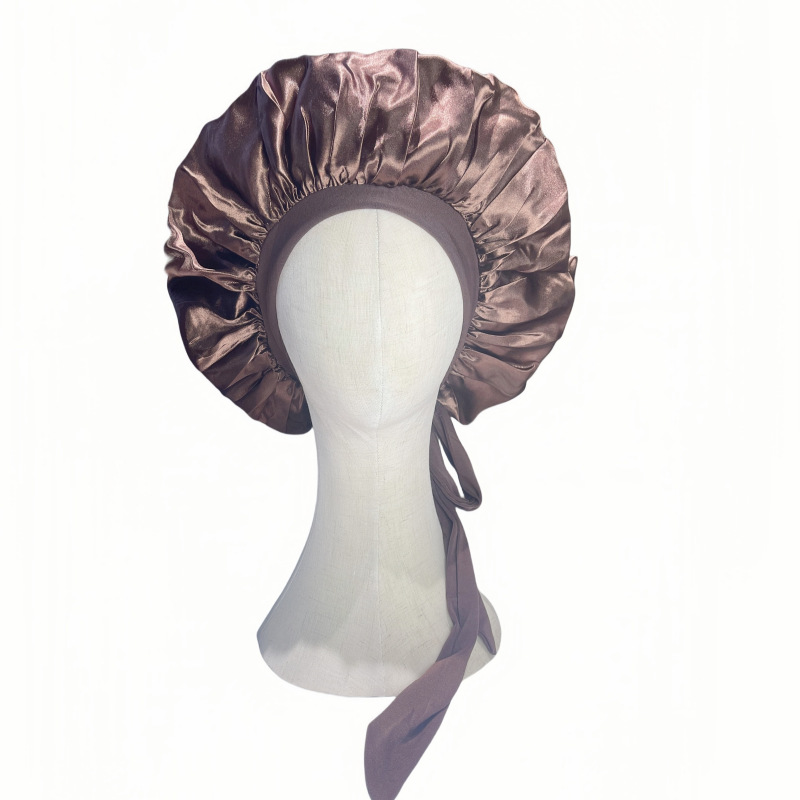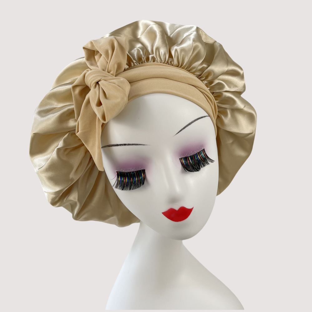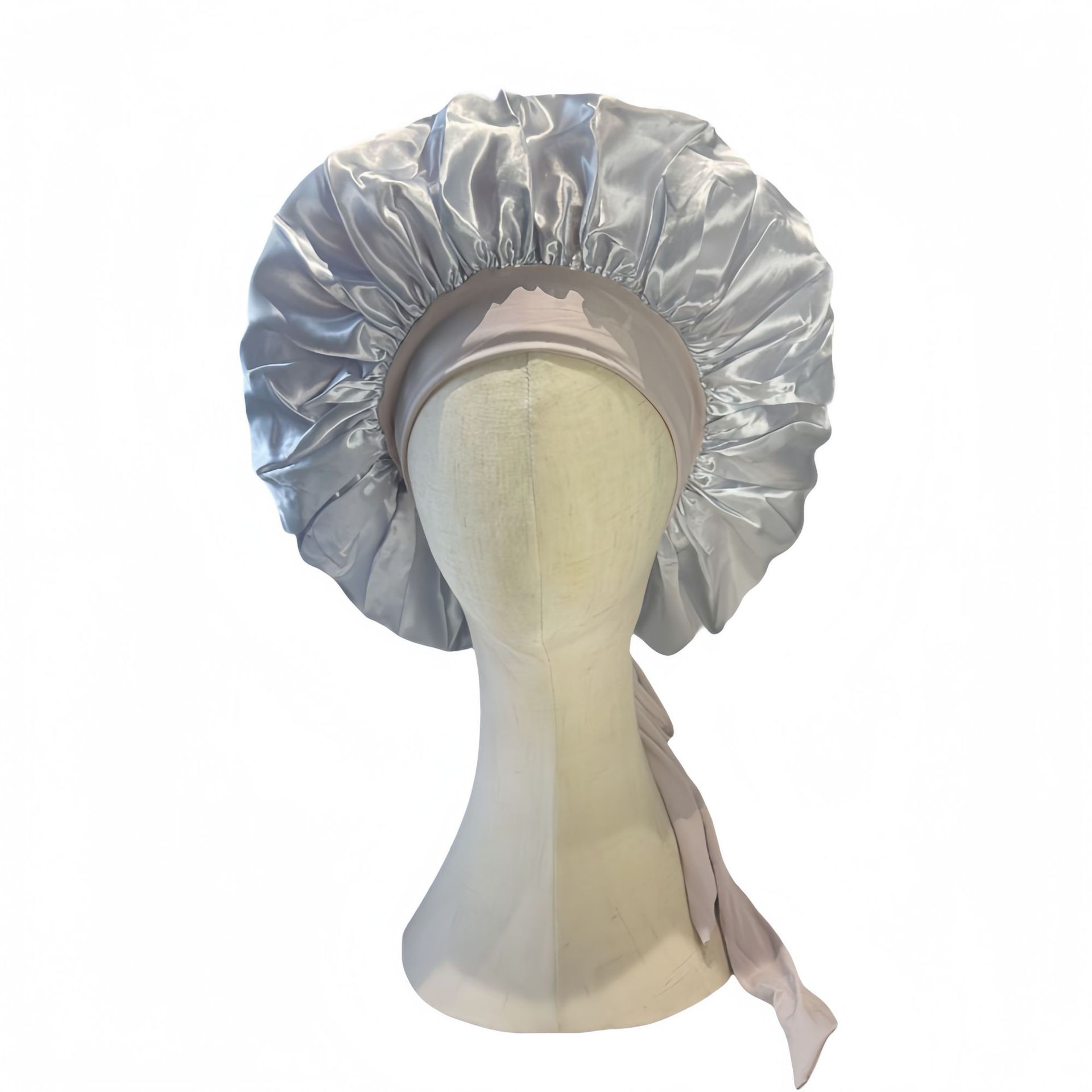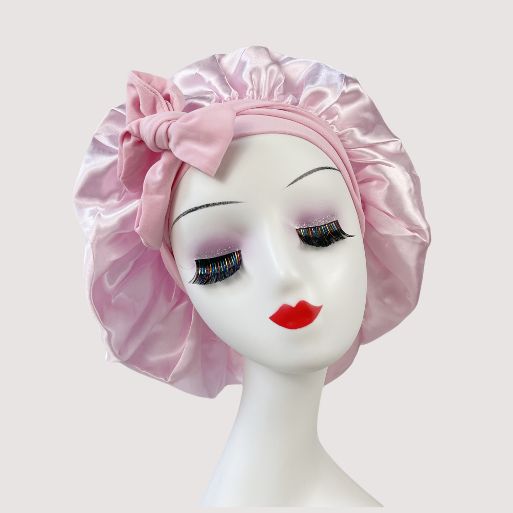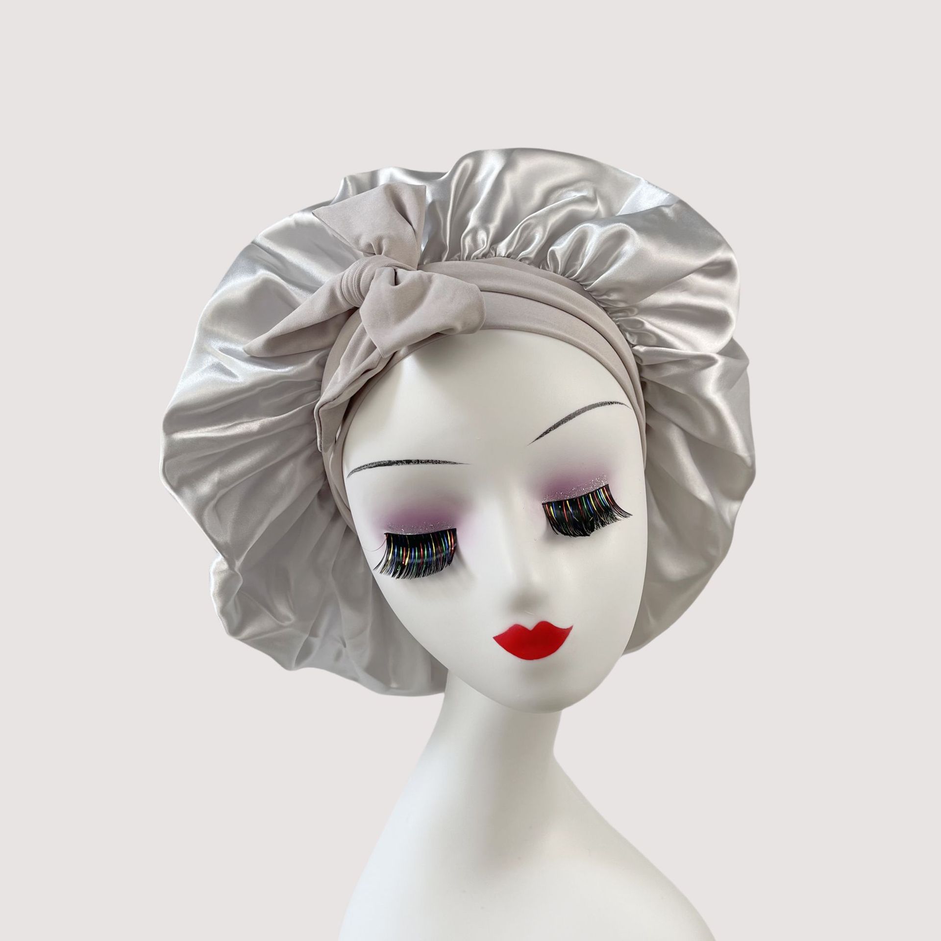 국경을 넘나드는 유럽과 미국의 인기 단색 스트랩 수면 모자 탄성 넓은 챙 새틴 보우 라운드 모자 헤어 케어 모자 샤워 캡