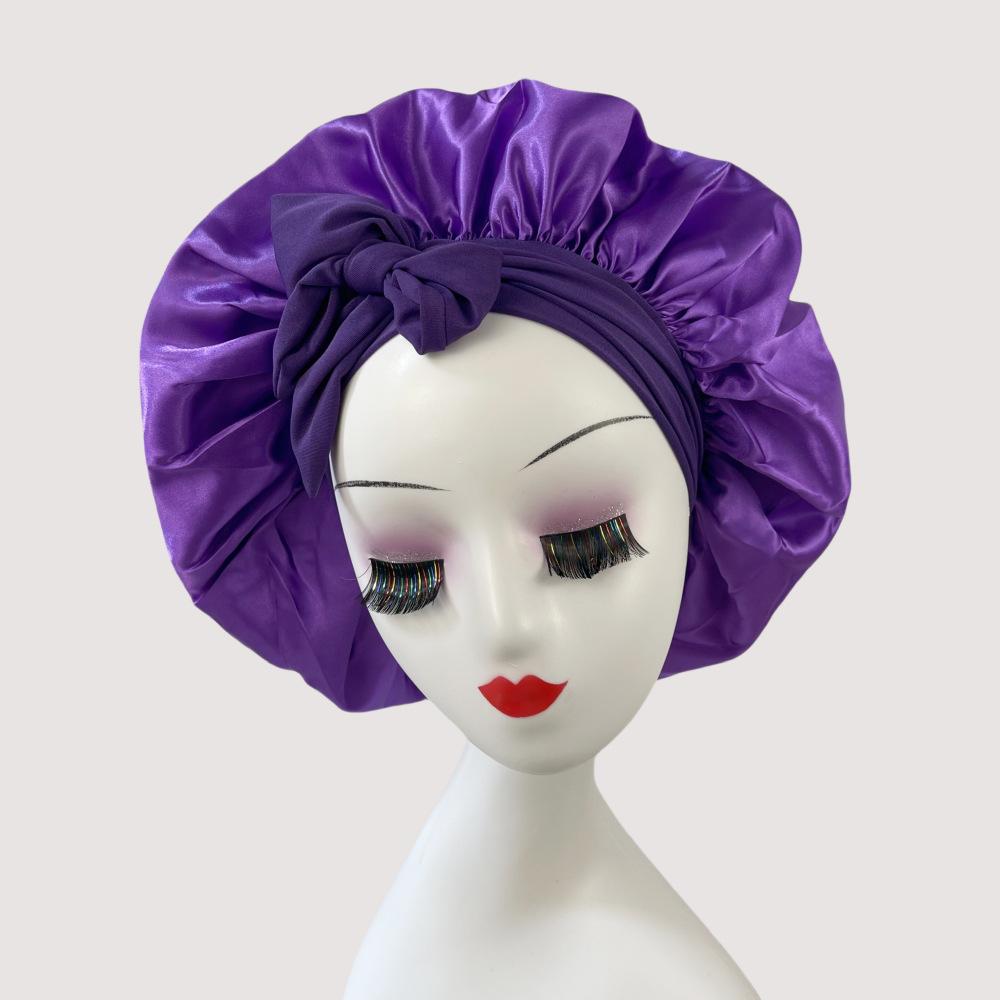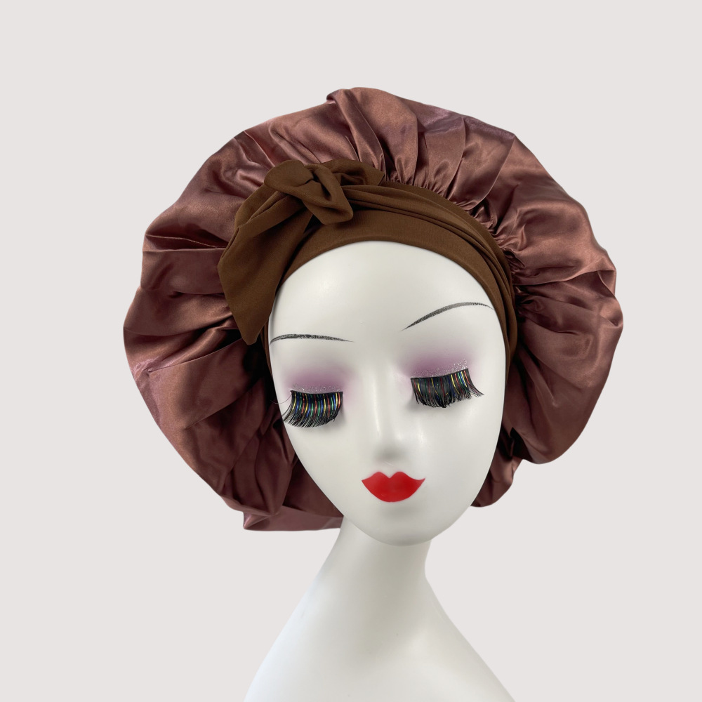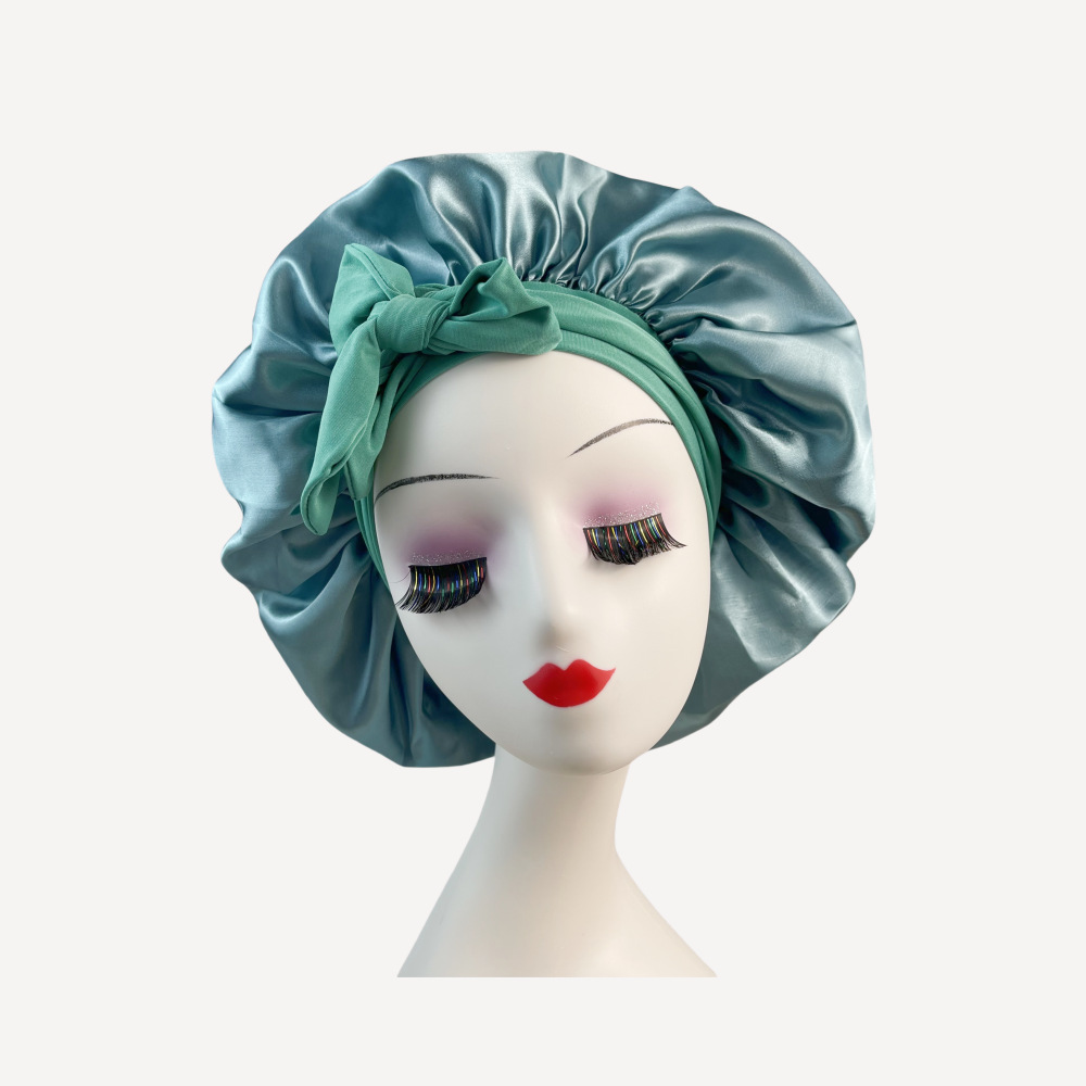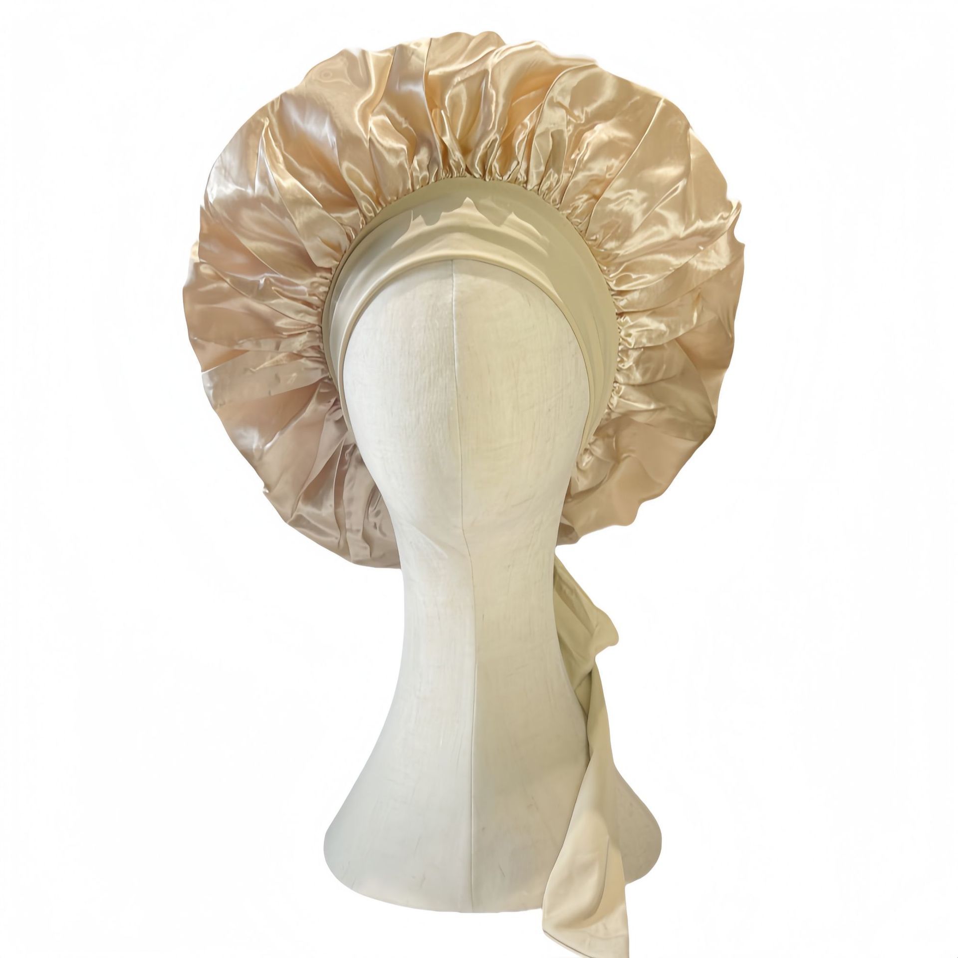 국경을 넘나드는 유럽과 미국의 인기 단색 스트랩 수면 모자 탄성 넓은 챙 새틴 보우 라운드 모자 헤어 케어 모자 샤워 캡