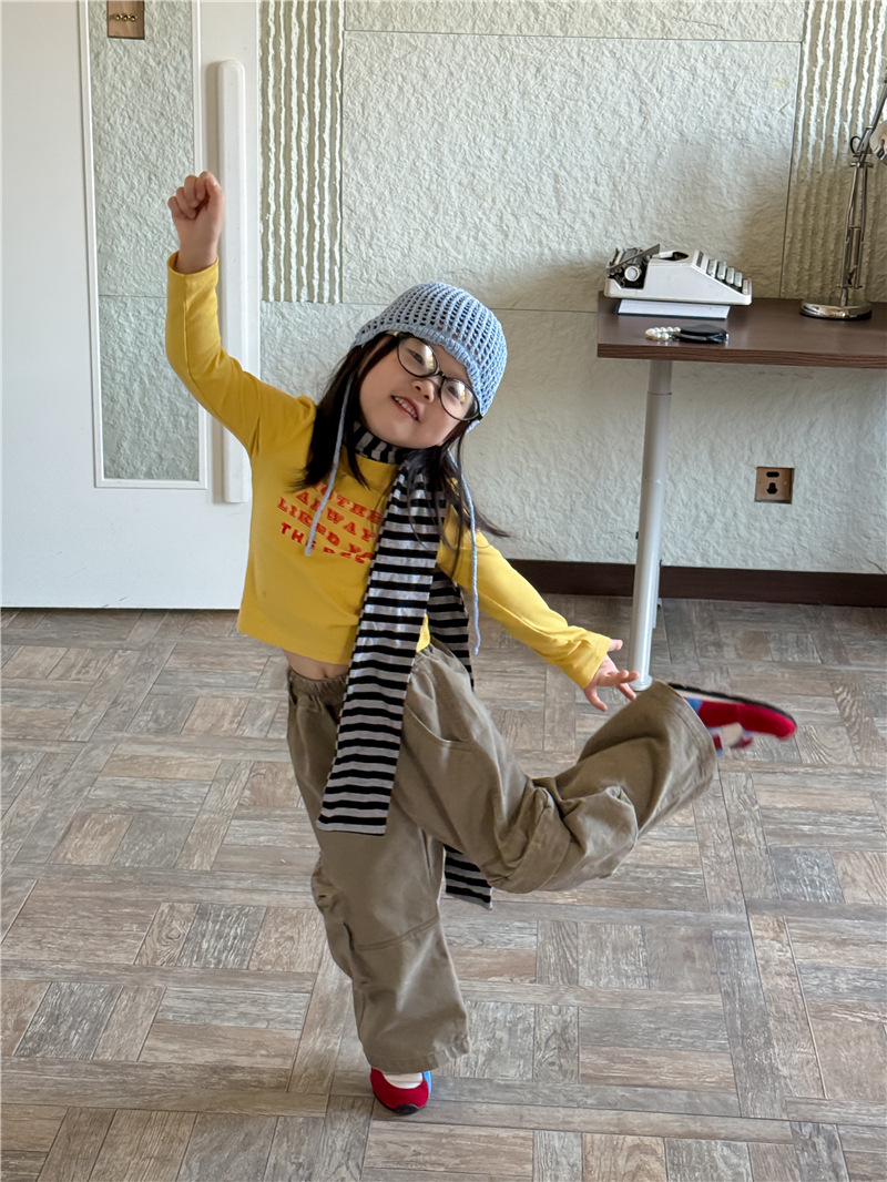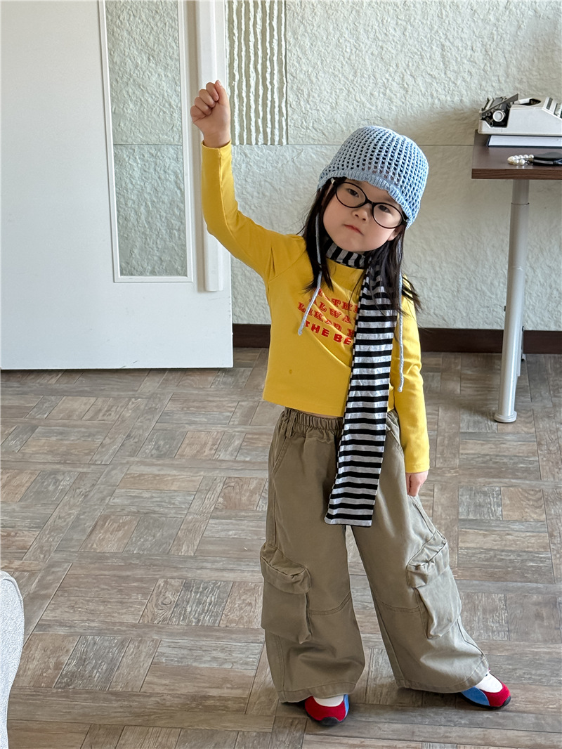 【555 클리어런스, 반품 불가】신상 한국 스타일 알파벳 긴팔 티셔츠 여아용 알파벳 숏탑 트렌디