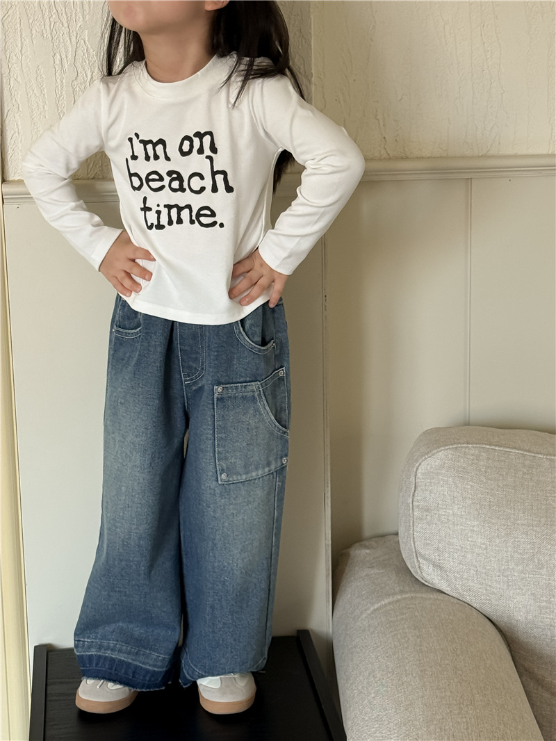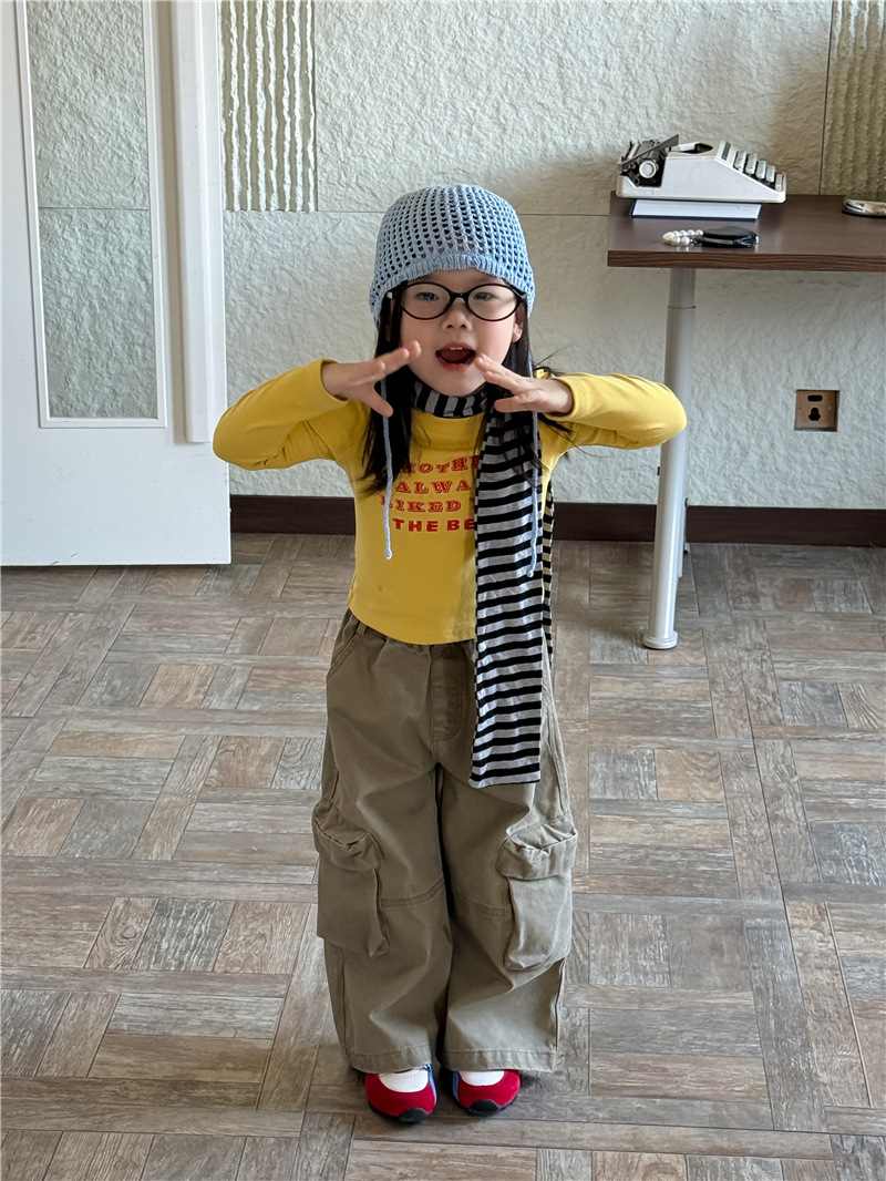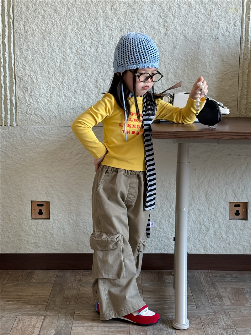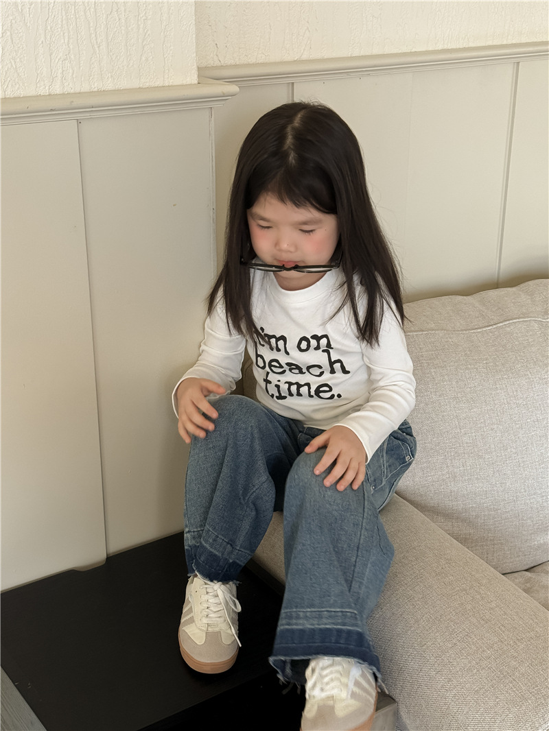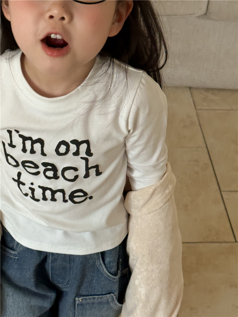 【555 클리어런스, 반품 불가】신상 한국 스타일 알파벳 긴팔 티셔츠 여아용 알파벳 숏탑 트렌디스토어 가기