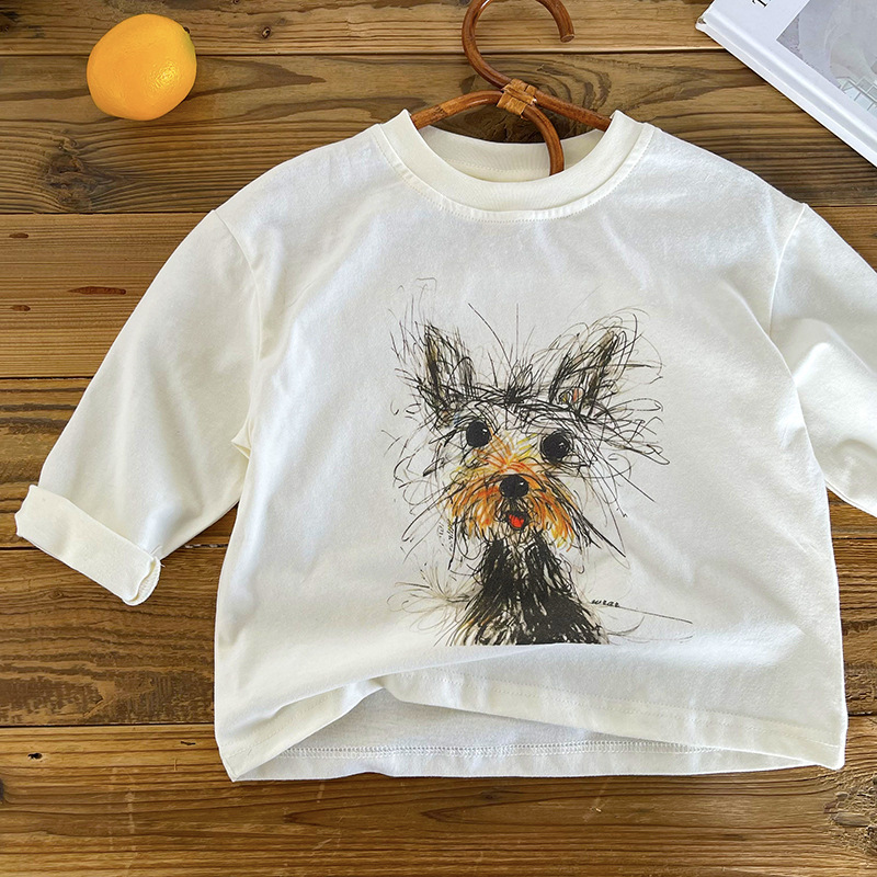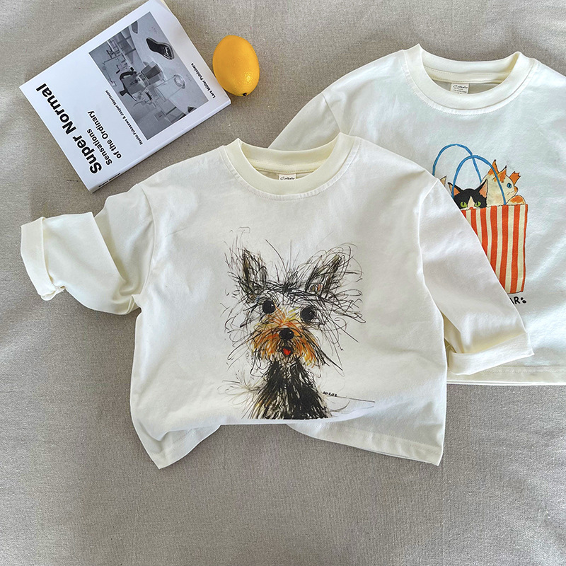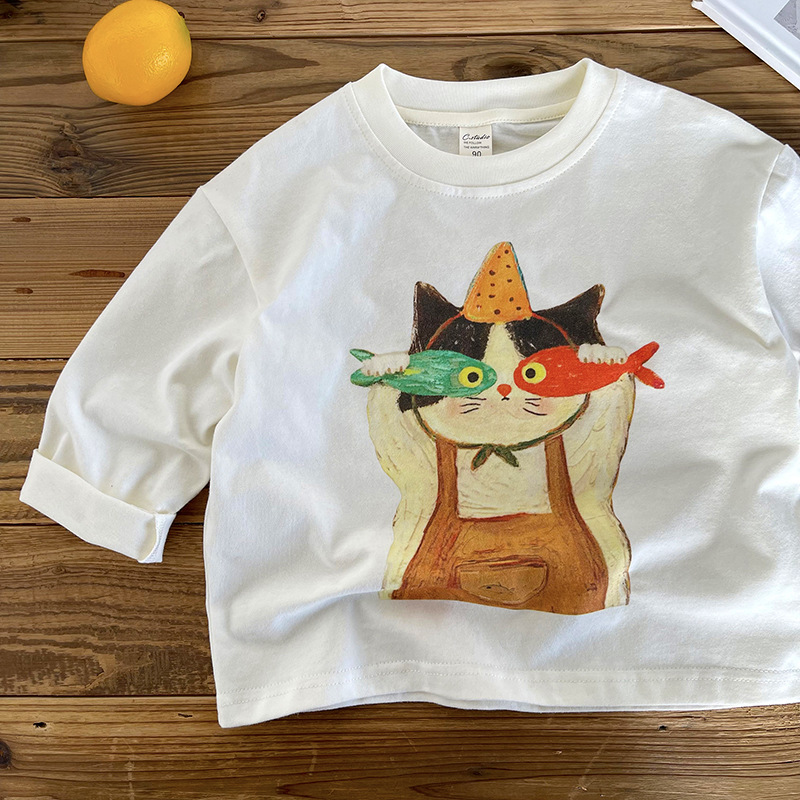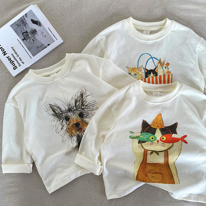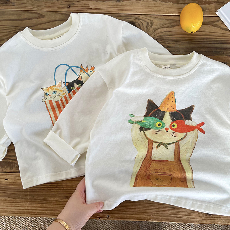 [Mountain View] 아동용 긴팔 티셔츠 2025 가을 신작 소년 소녀 만화 긴팔 T 베이비 심플 바닥 셔츠스토어 가기