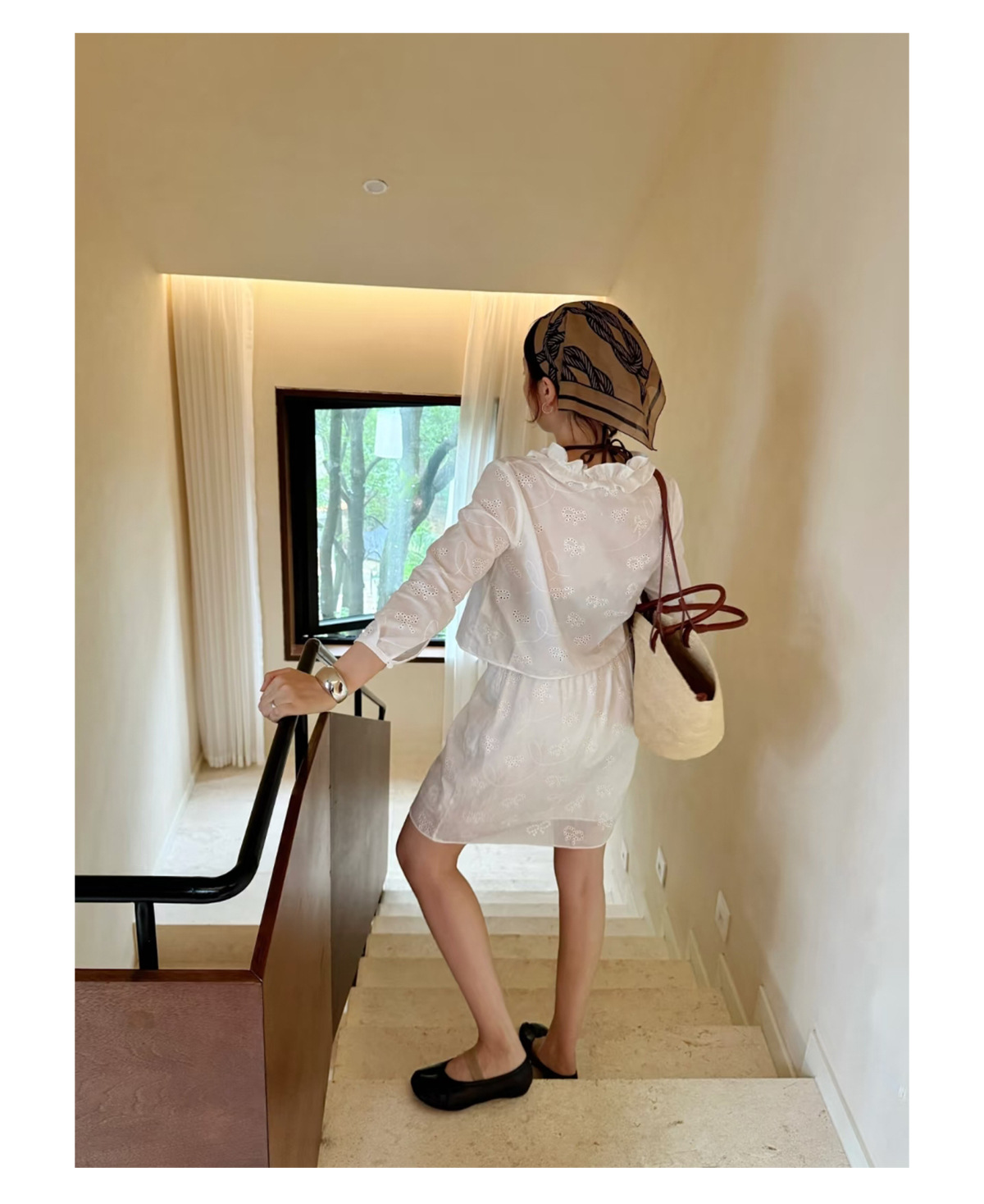 "오리지널 패브릭" Nanyou 여성 도매 버진 레이스 업 카디건 탑 보우 자수 스커트 슈트스토어 가기
