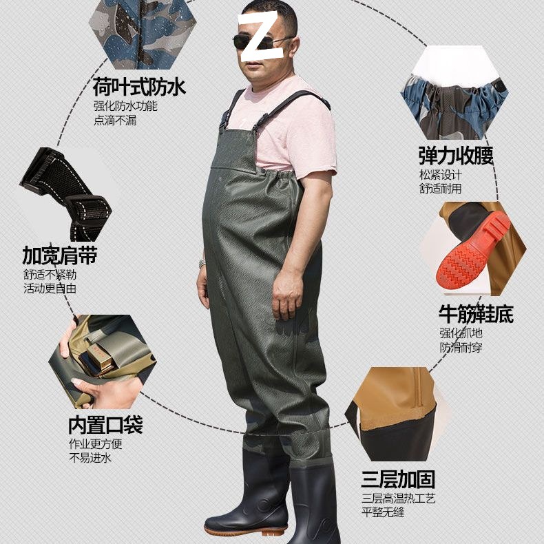 두꺼운 내마모성 낚시 하프레인팬츠, 남녀 원피스 방수복, 가죽바지, 어부바지, 워터슈즈스토어 가기