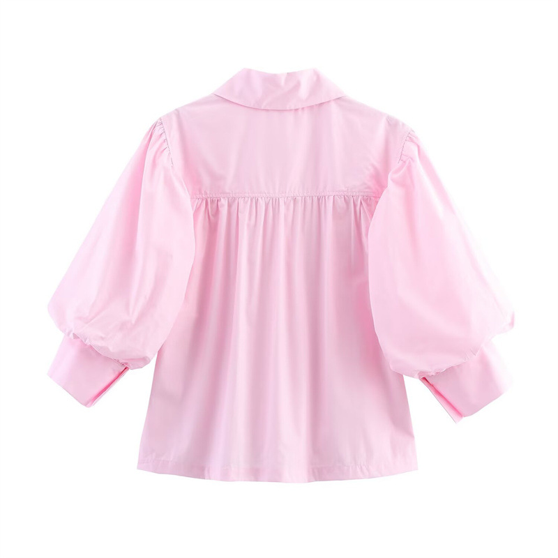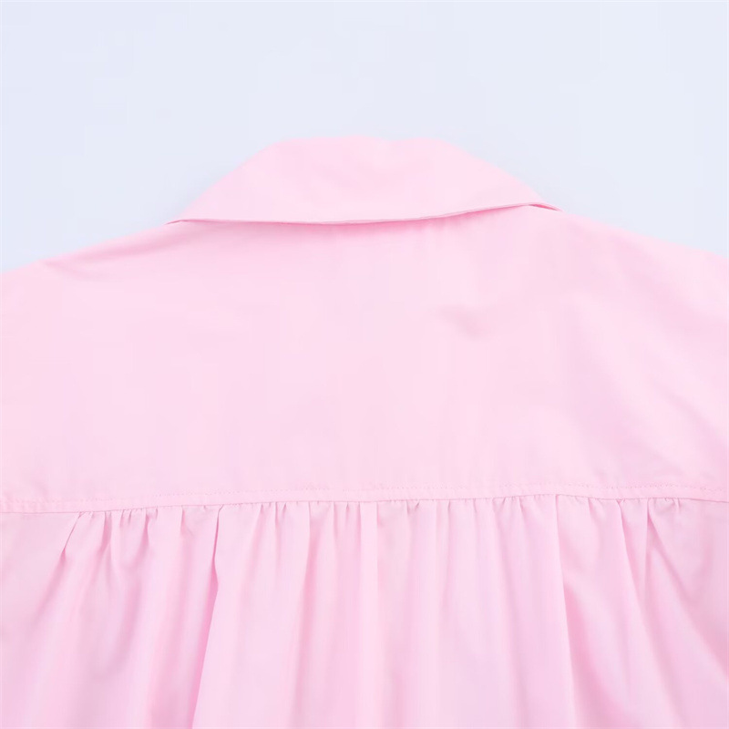 국경 간 대외 무역 2025 새로운 유럽과 미국 스타일의 패션 여성 반팔 옷깃 포플린 캐주얼 루즈 셔츠
