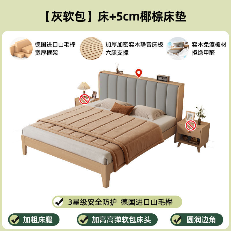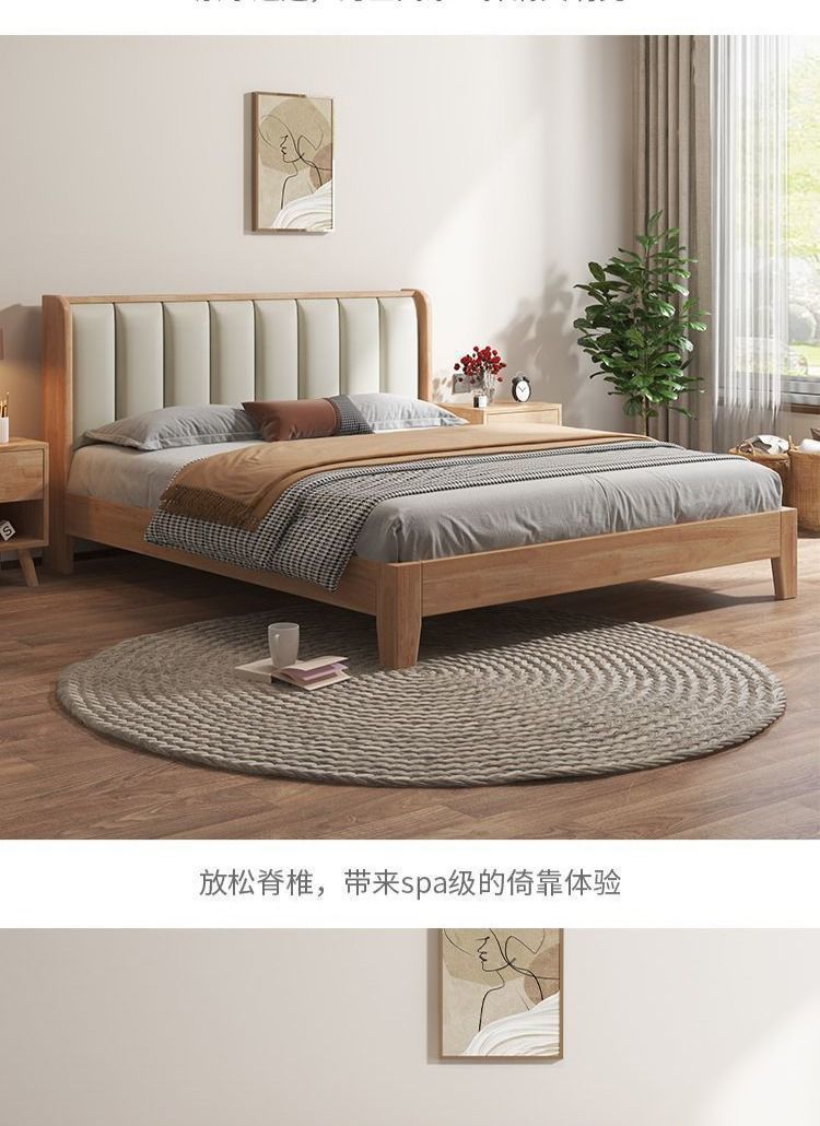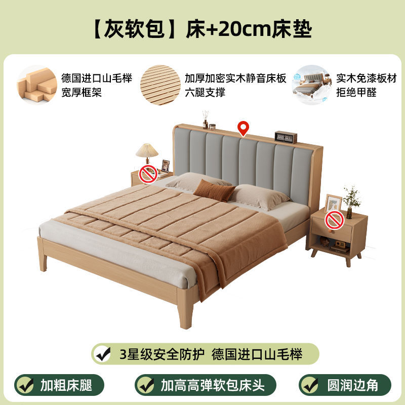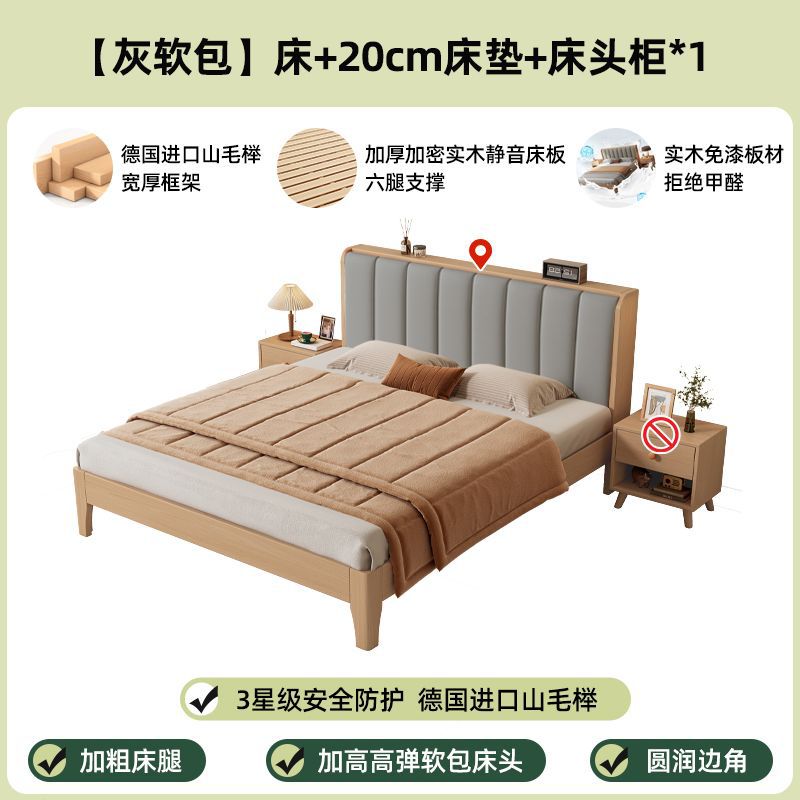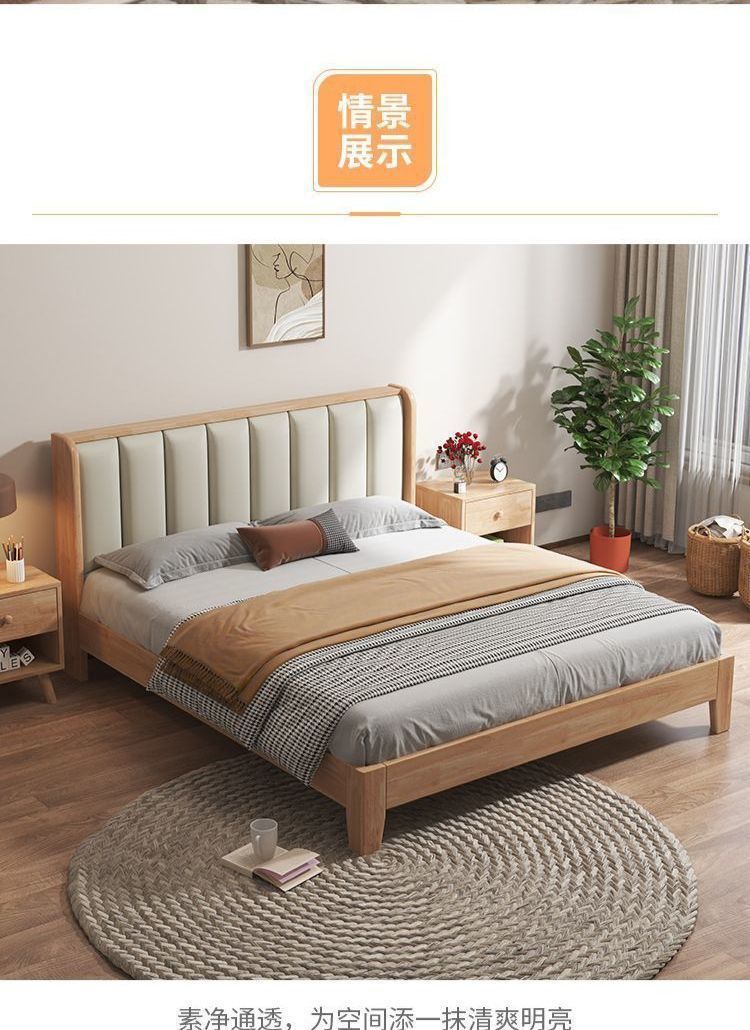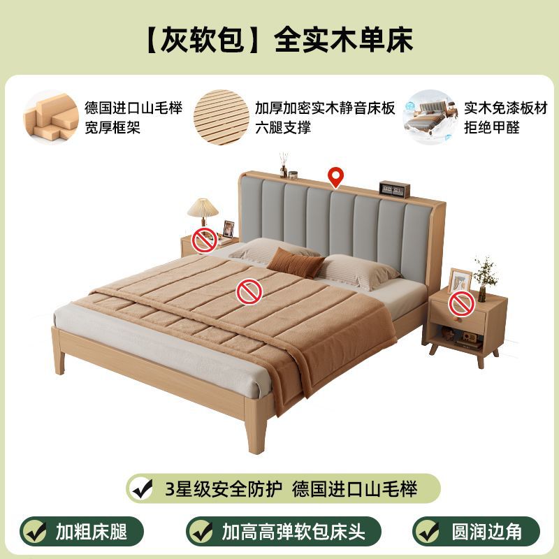 모든 너도밤나무 원목 침대 유형 현대적인 단순 1.8 더블 싱글 침대 0.9m 소프트 팩 침대 가정용 내구성 침대 프레임스토어 가기
