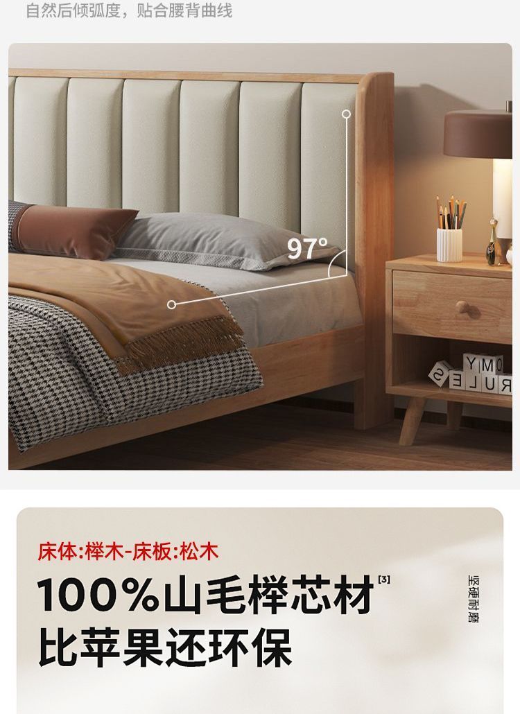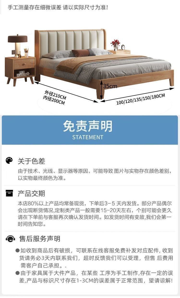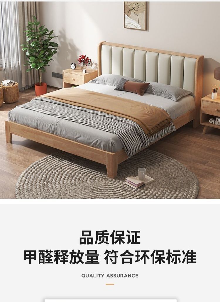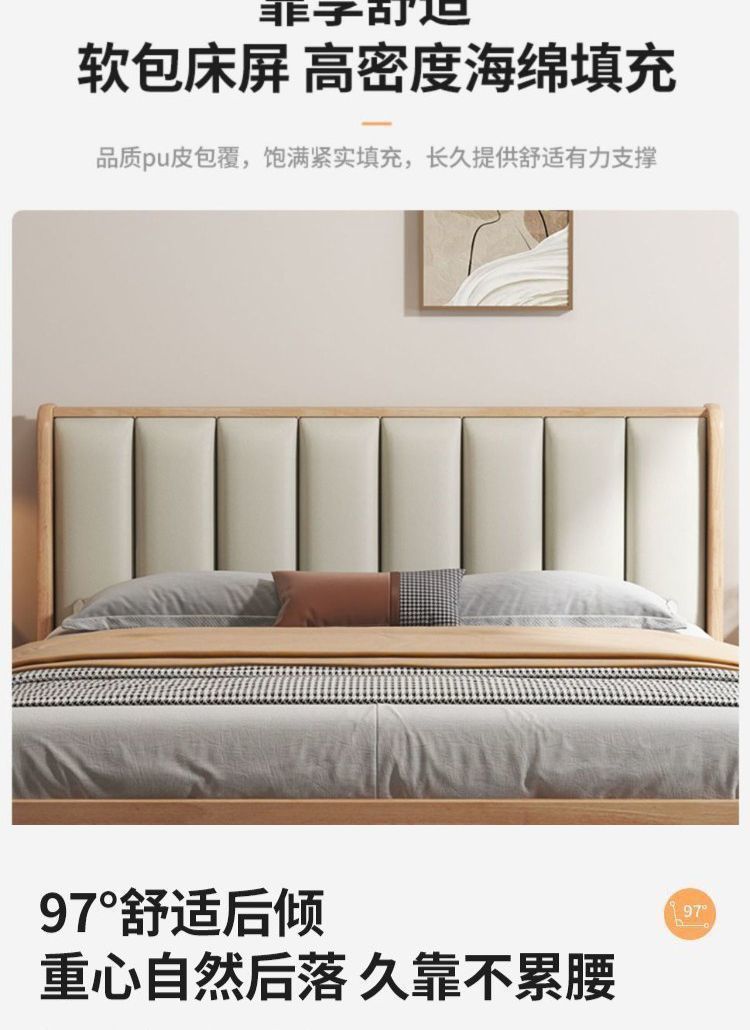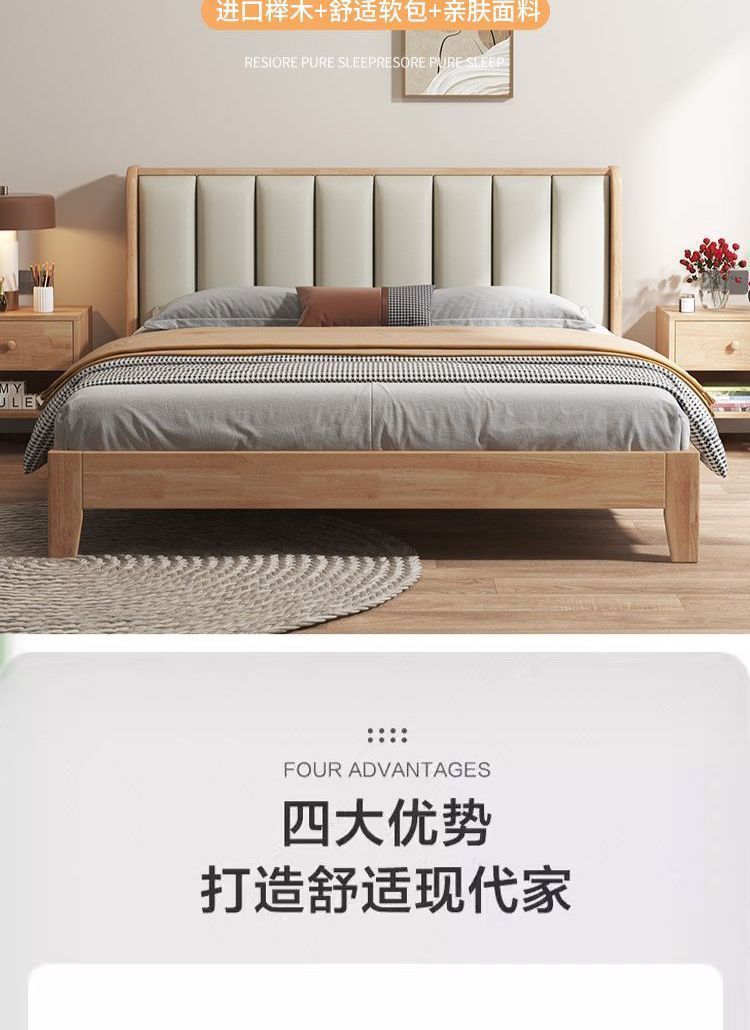 모든 너도밤나무 원목 침대 유형 현대적인 단순 1.8 더블 싱글 침대 0.9m 소프트 팩 침대 가정용 내구성 침대 프레임스토어 가기
