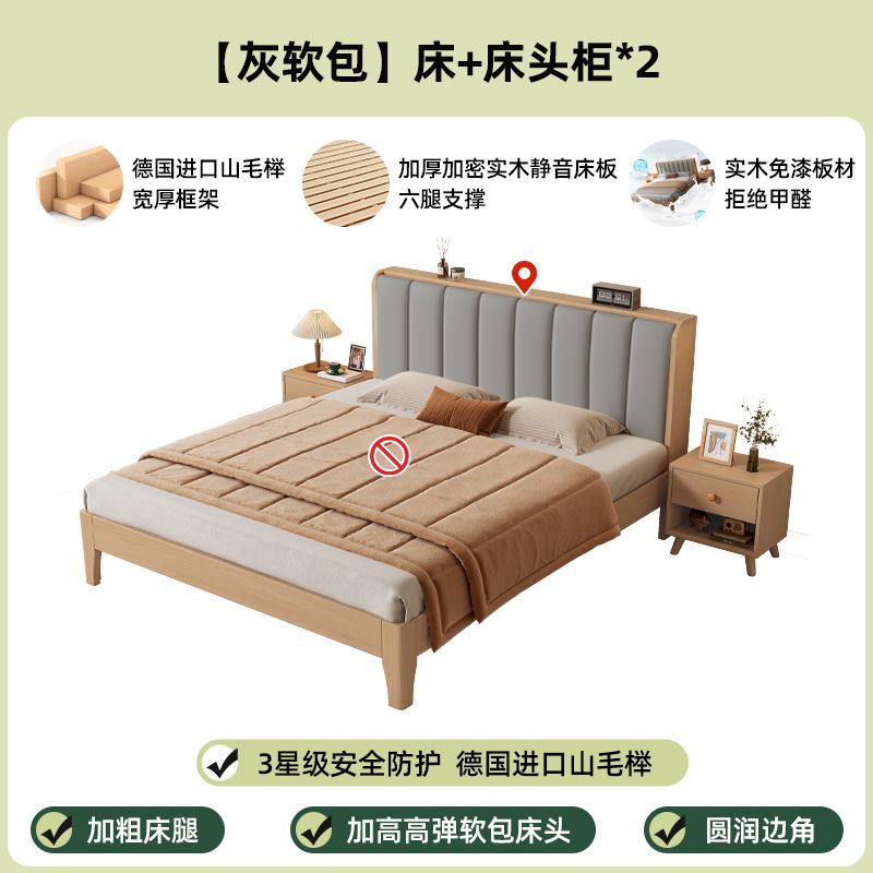 모든 너도밤나무 원목 침대 유형 현대적인 단순 1.8 더블 싱글 침대 0.9m 소프트 팩 침대 가정용 내구성 침대 프레임