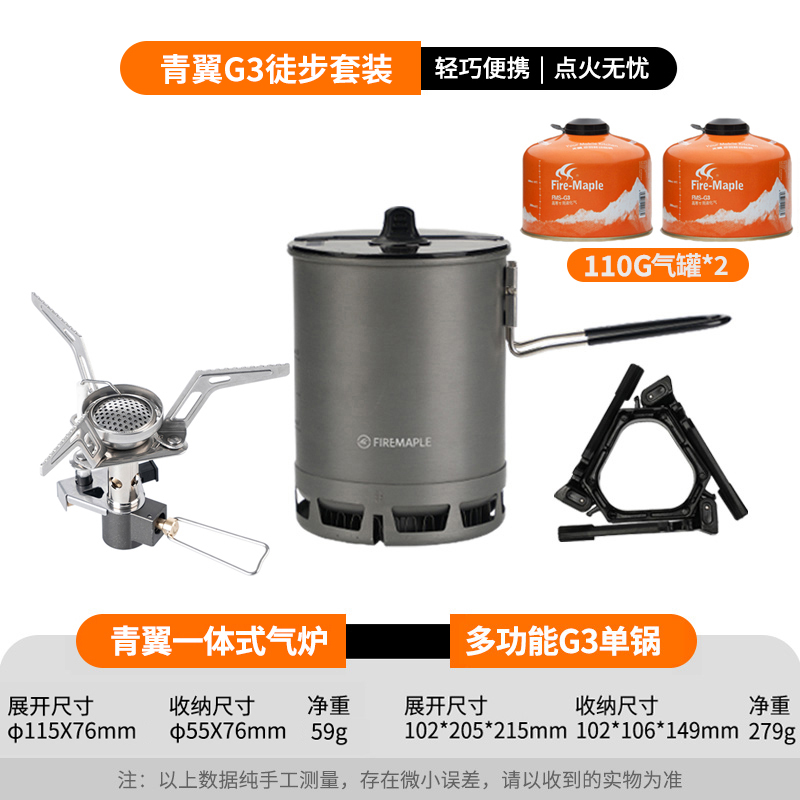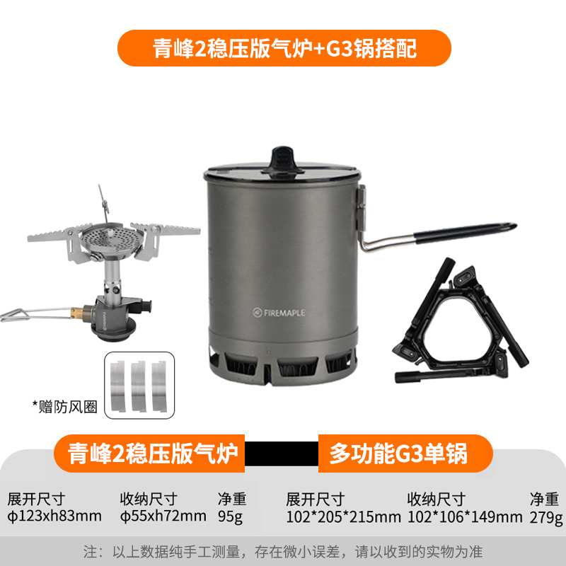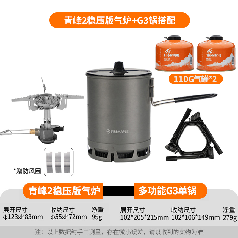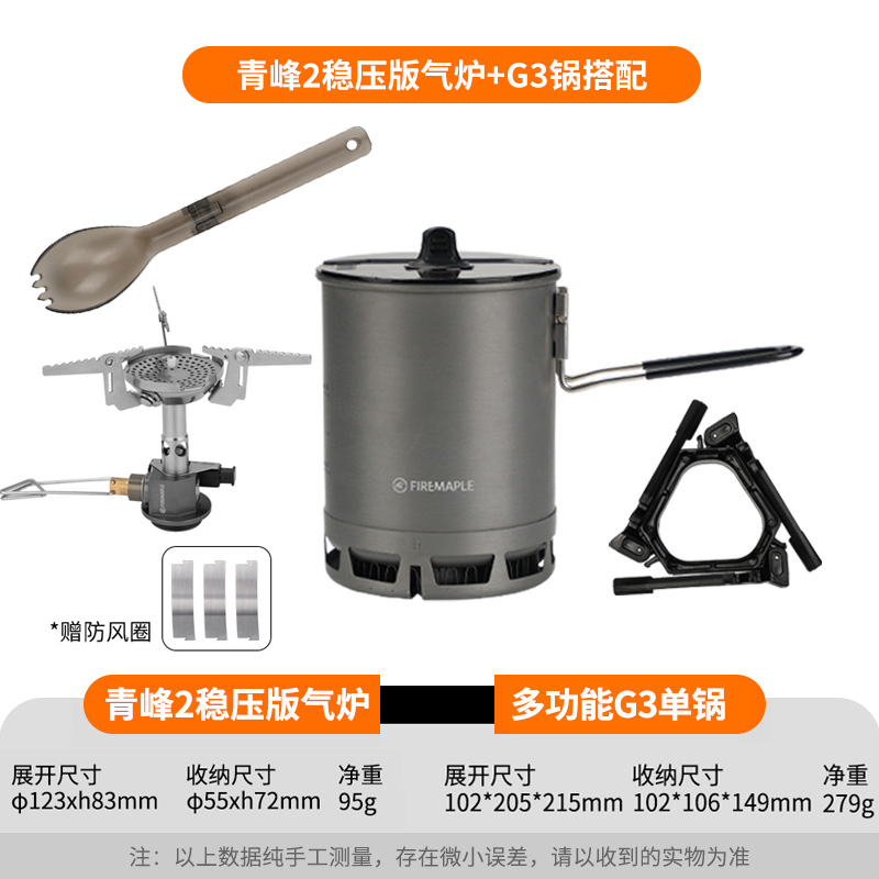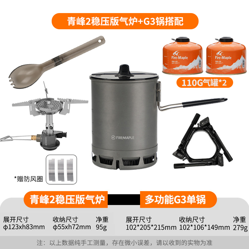 • Qingfeng 2 화로 (안정화 버전) + G3 냄비 + 가스 탱크 2 개