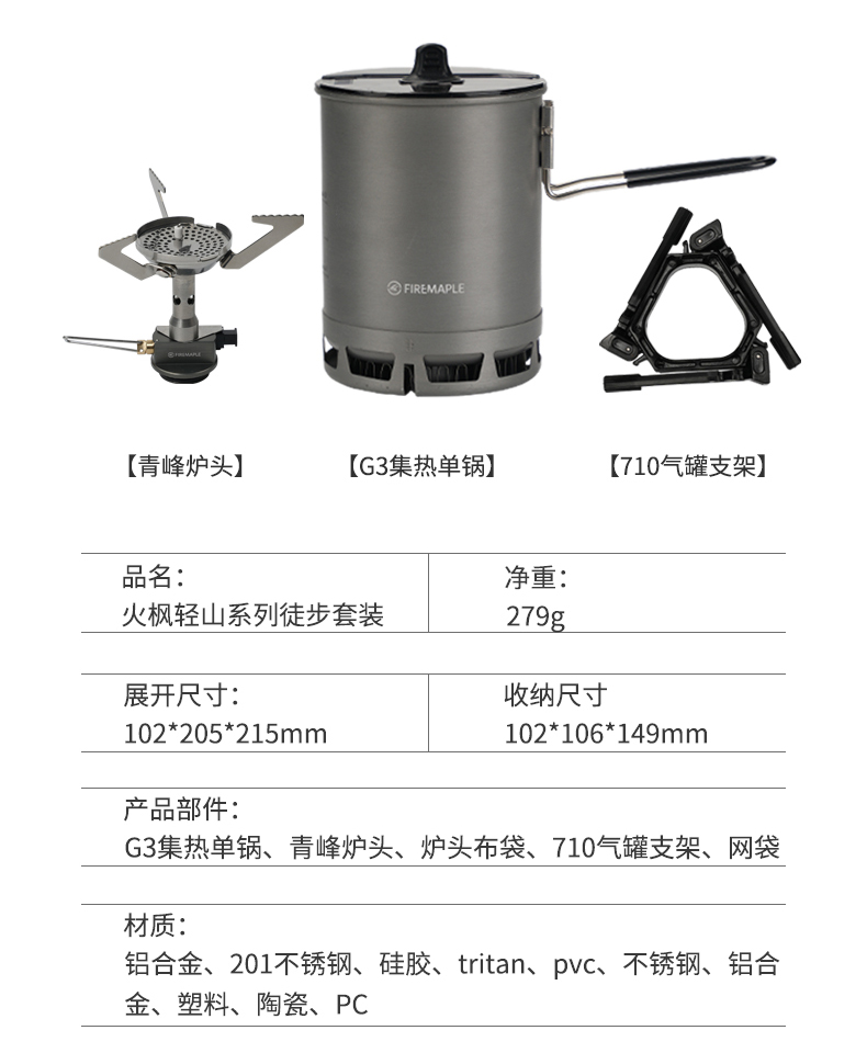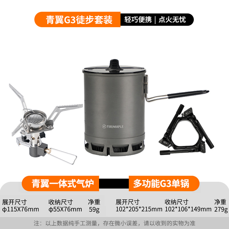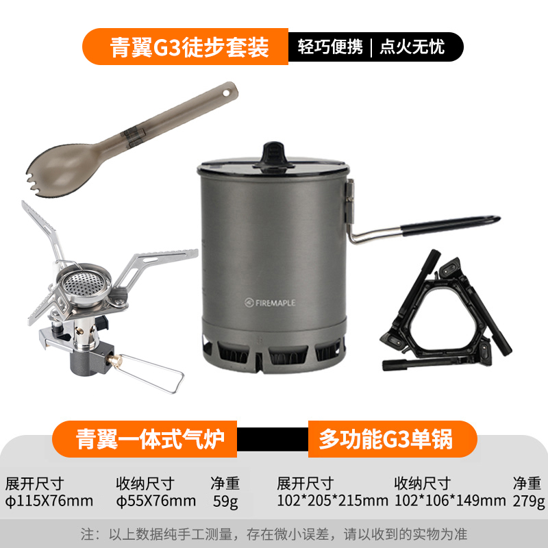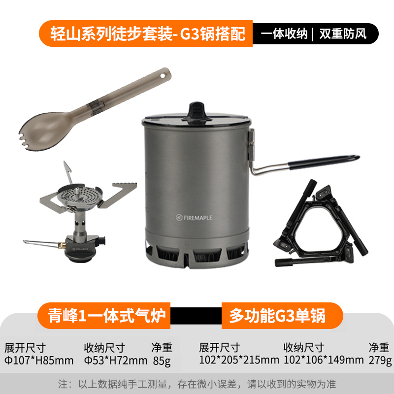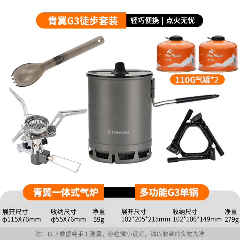 • Qingshan 시리즈 하이킹 세트(G3 냄비는 110G 가스를 담을 수 있음)