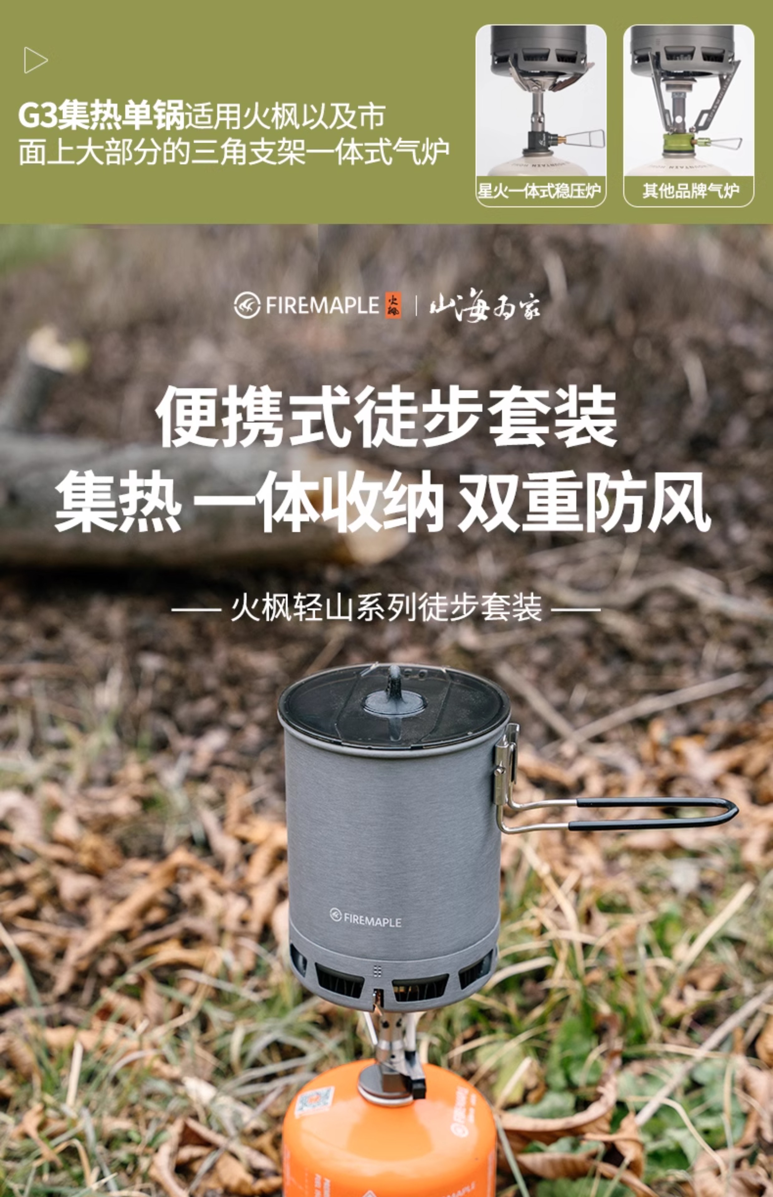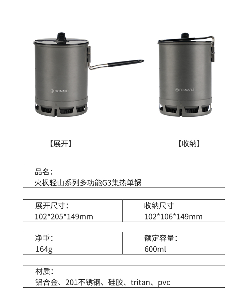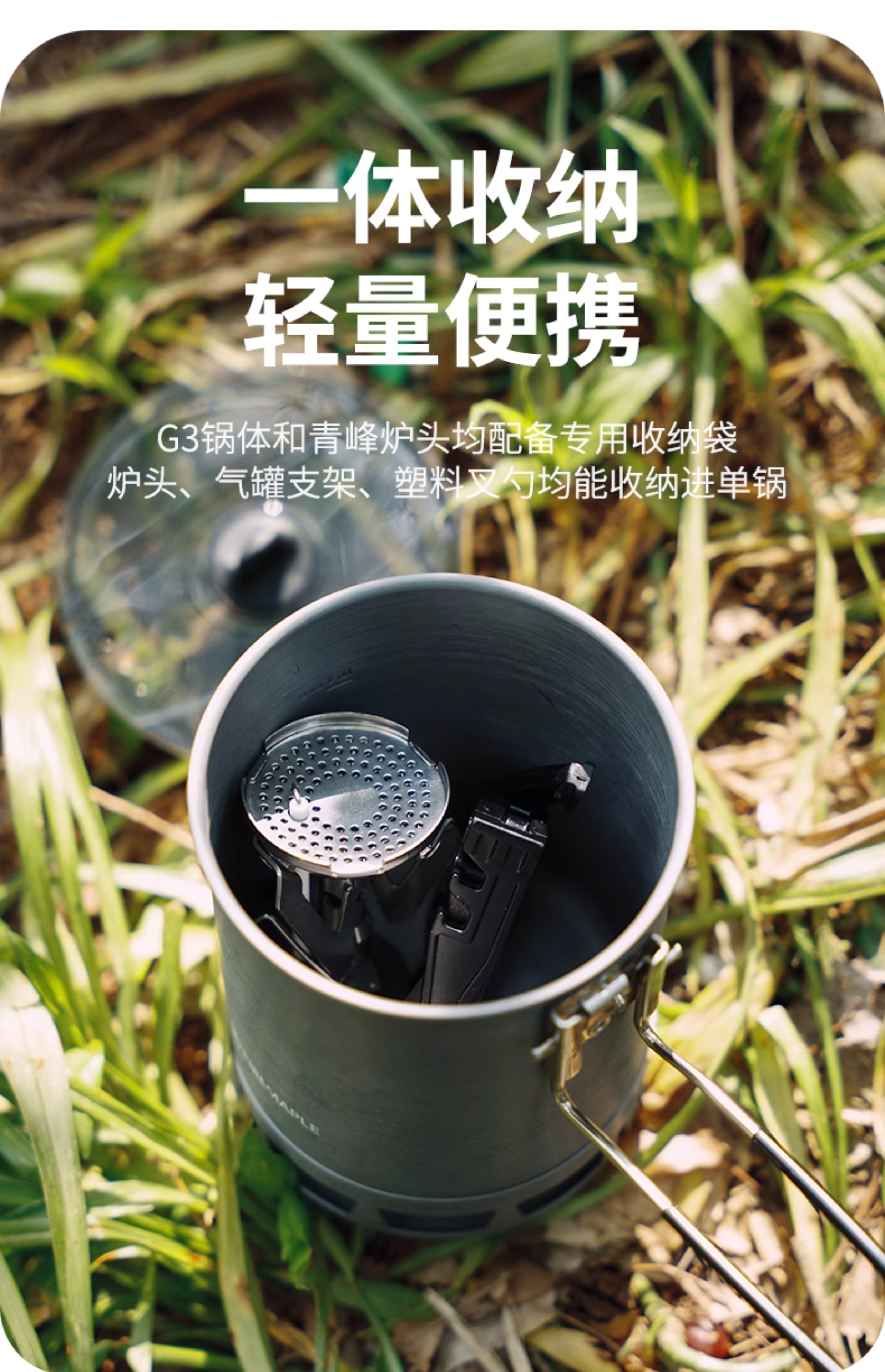 • Qingshan 시리즈 하이킹 세트(G3 냄비는 110G 가스를 담을 수 있음)