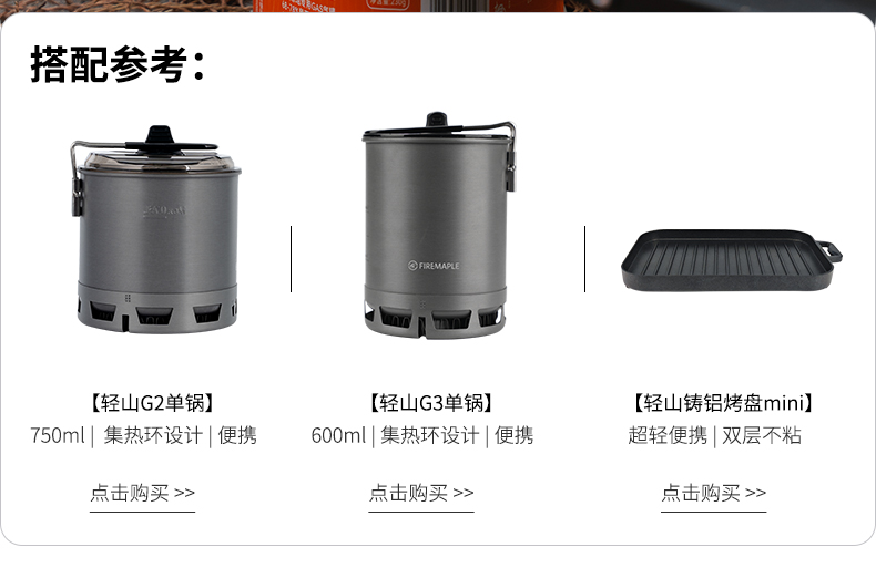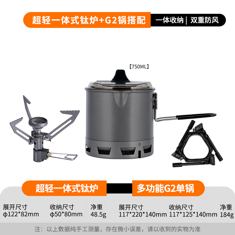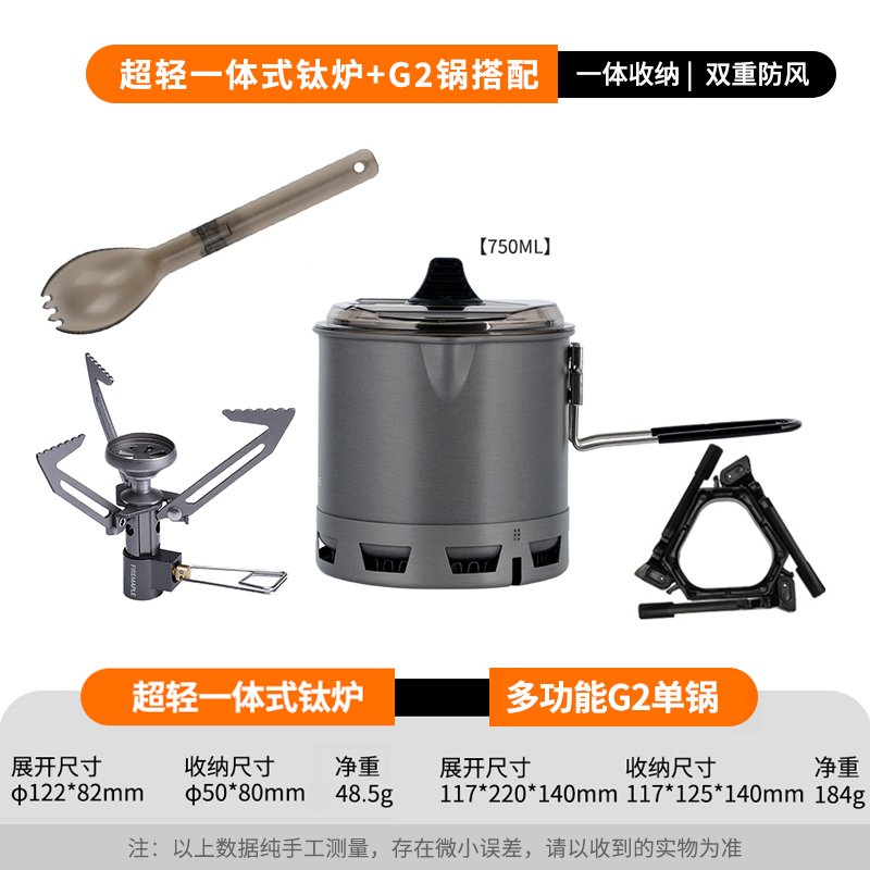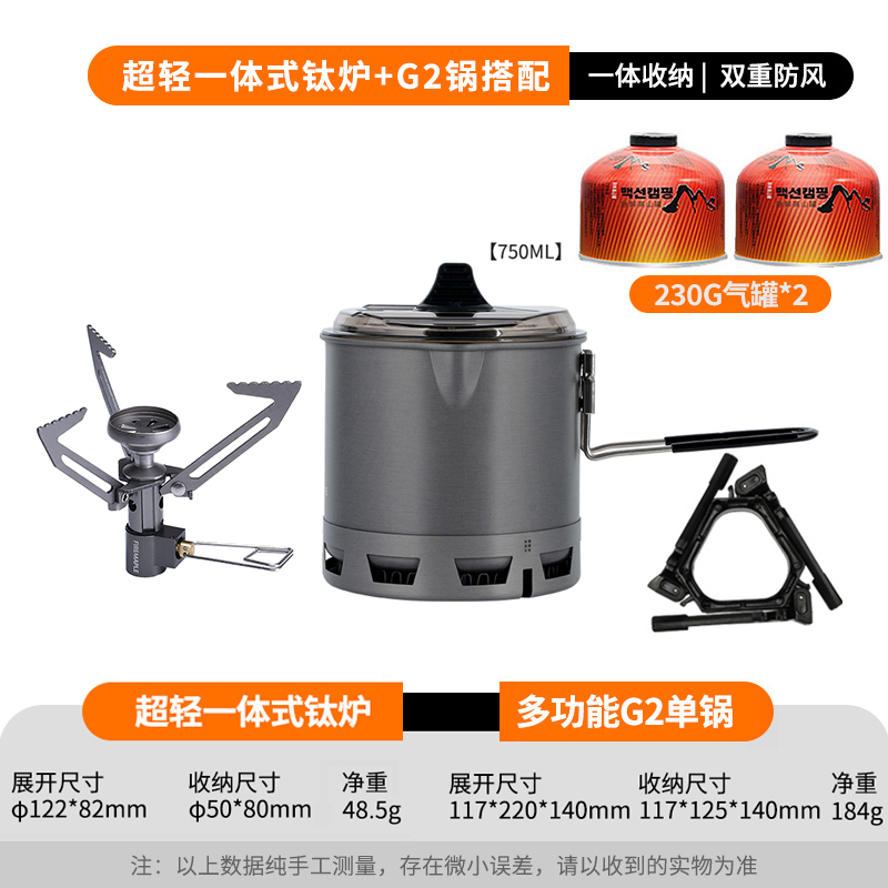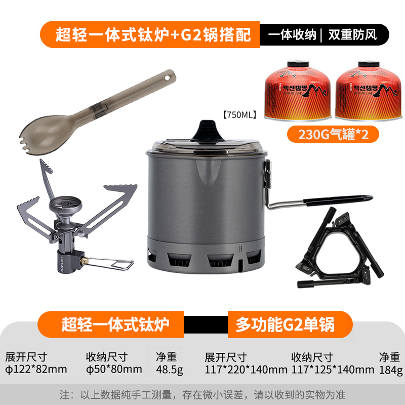 • Qingshan 일체형 티타늄 스토브 세트(G2 냄비는 230G 가스 탱크를 수용할 수 있음)