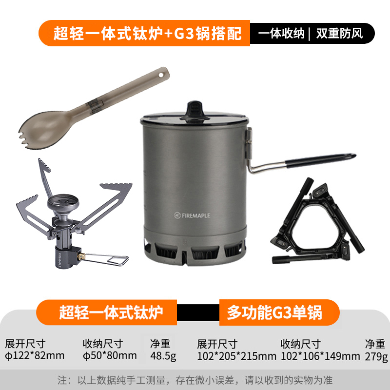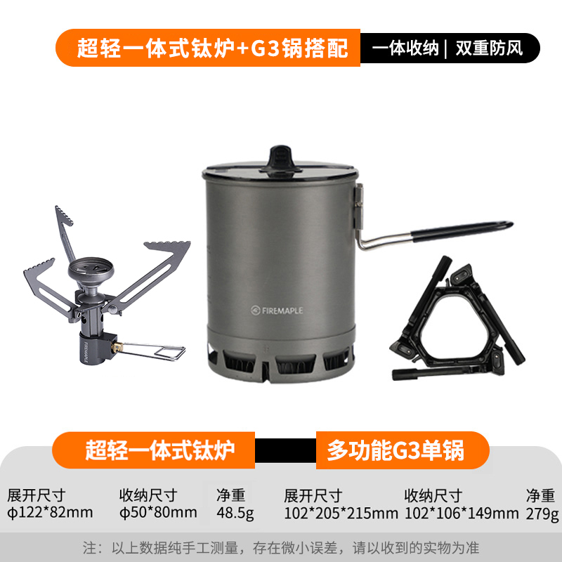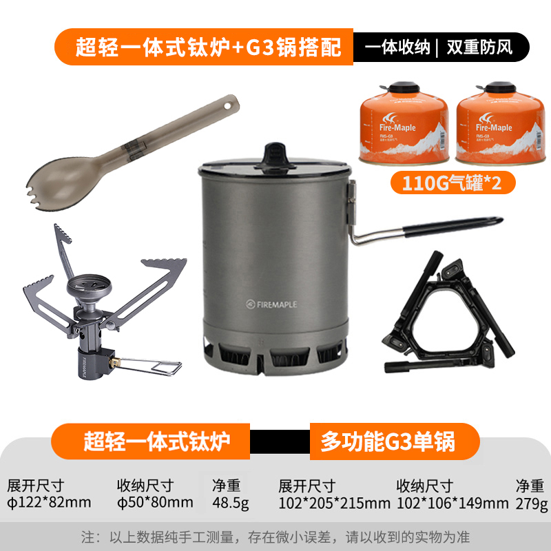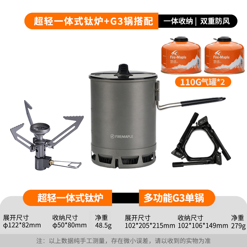 • Qingshan 일체형 티타늄 스토브 세트(G3 냄비는 110G 가스 실린더를 수용할 수 있음)