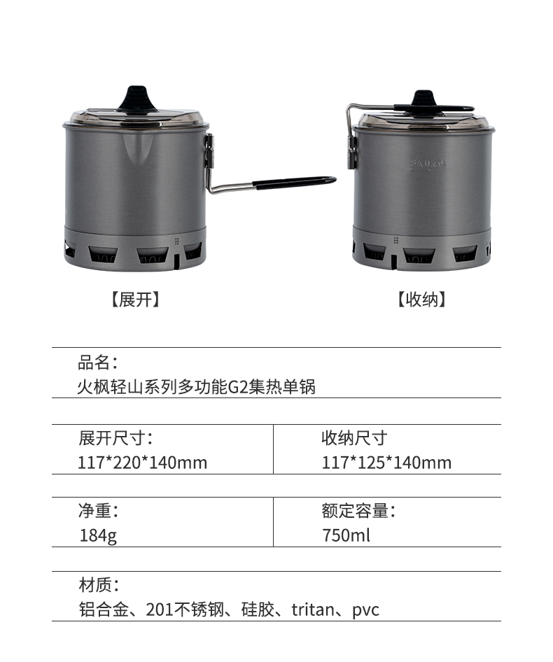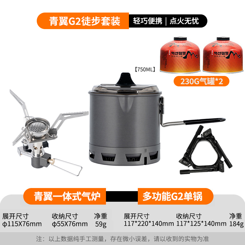 • Qingyi G2 하이킹 세트(G2 단일 냄비는 230G 캔을 담을 수 있음)