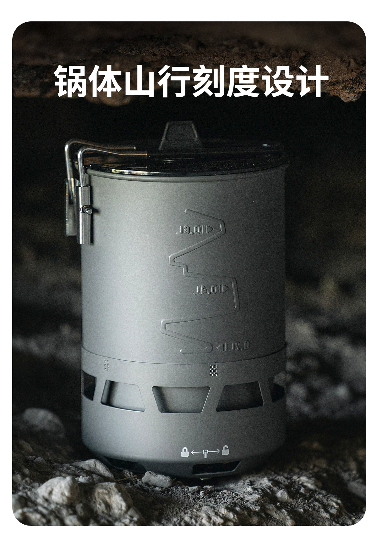 • Qingshan 시리즈 하이킹 세트 G2 냄비 + 접이식 포크와 스푼
