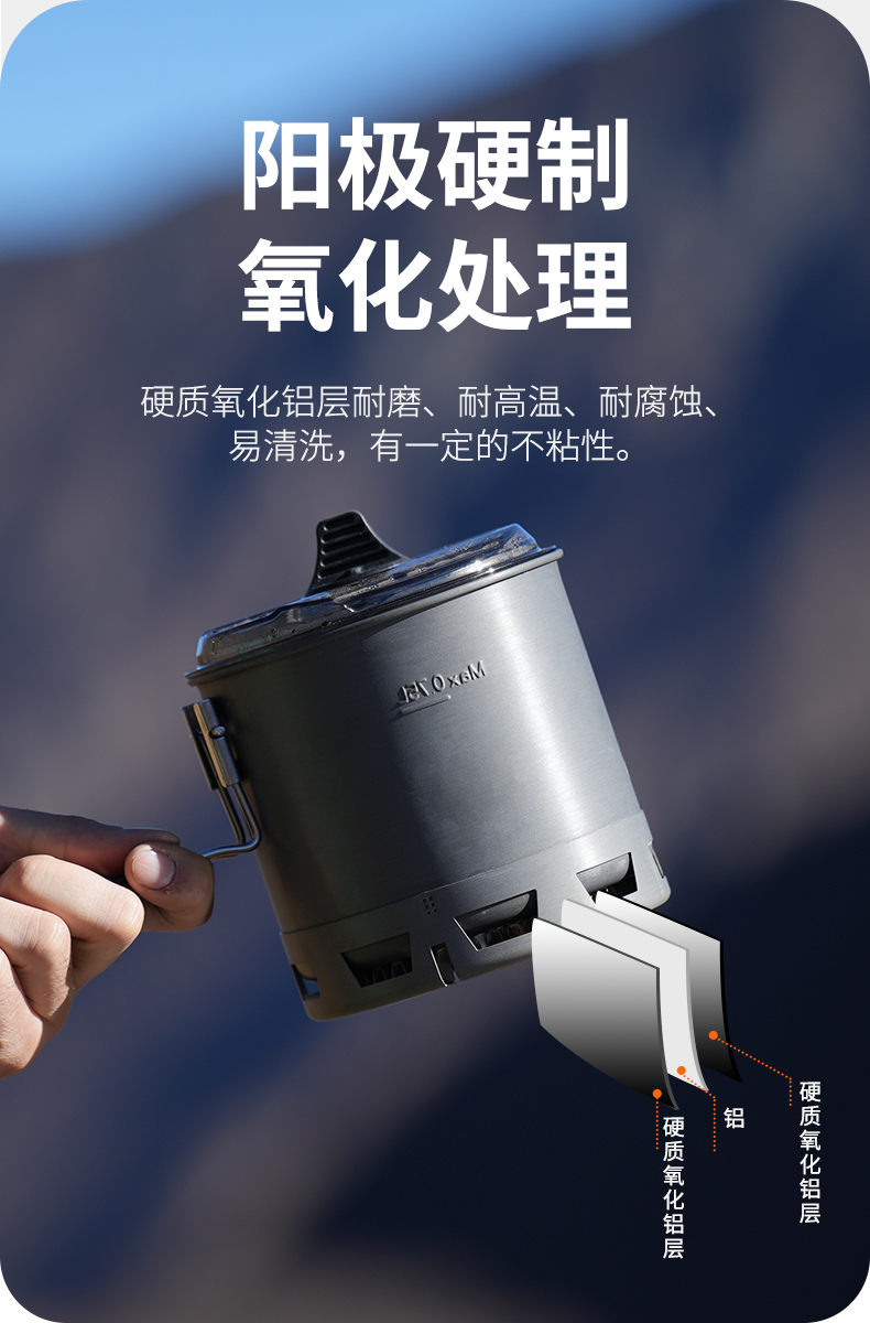 • Qingshan 시리즈 하이킹 세트 G3 냄비 + 접이식 포크와 스푼
