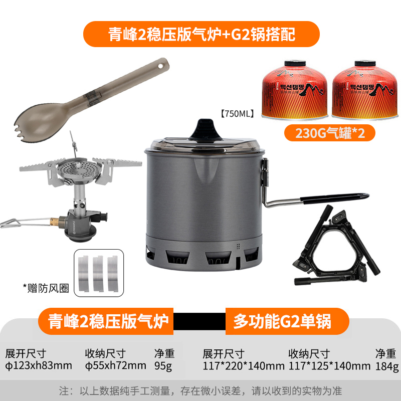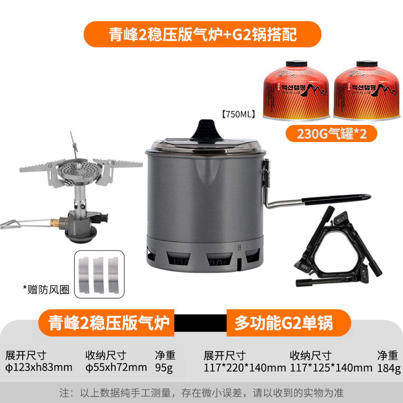 • Qingfeng 2 화로(안정화 버전 + G2 냄비(230G 평면 가스 병 수용 가능)