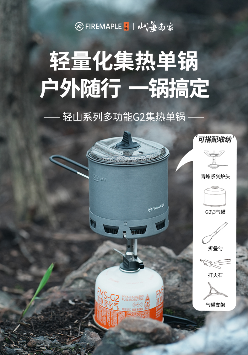 • Qingfeng 2 화로 (안정화 버전) + G2 냄비 + 접이식 포크와 스푼