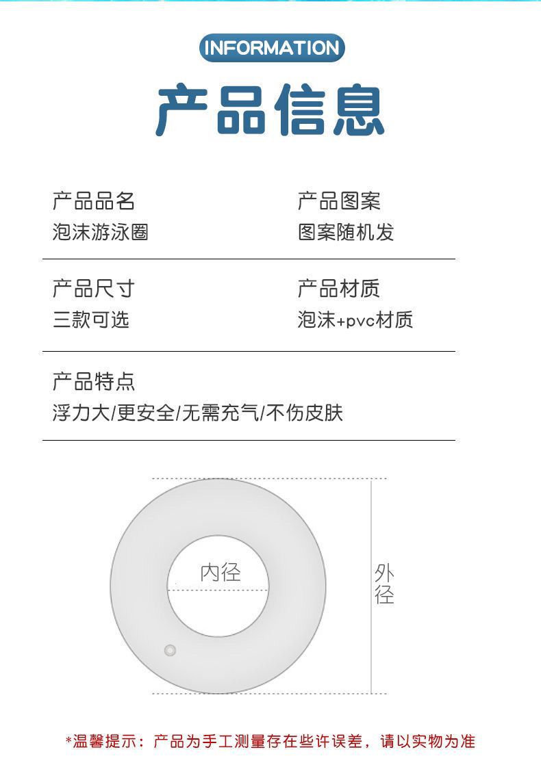 성인용 수영 반지, 폼 솔리드, 공기 주입 불가, 어린이용 유아용 플로팅 반지, 물 구명 부표, 겨드랑이 반지, 어린이용 대형 부력스토어 가기