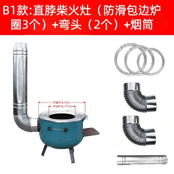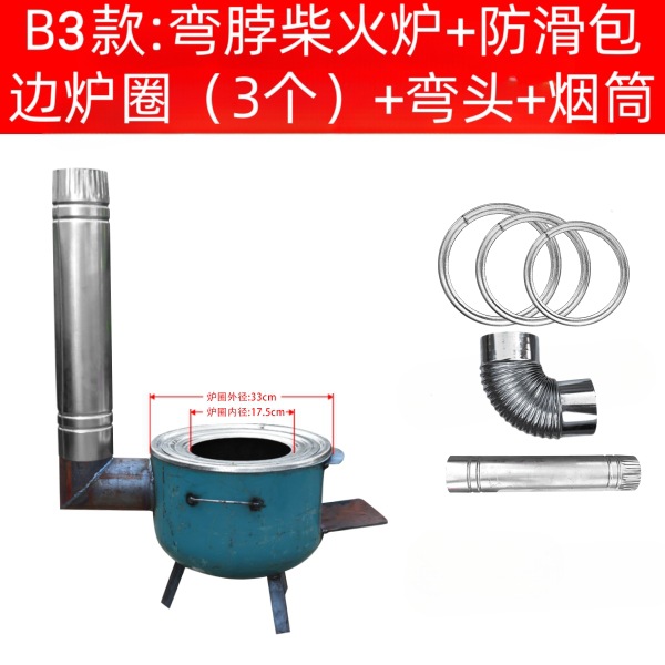 • 모델 B3: 미끄럼 방지 링이 있는 곡선형 목 장작 난로(3개) + 팔꿈치 + 굴뚝
