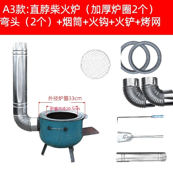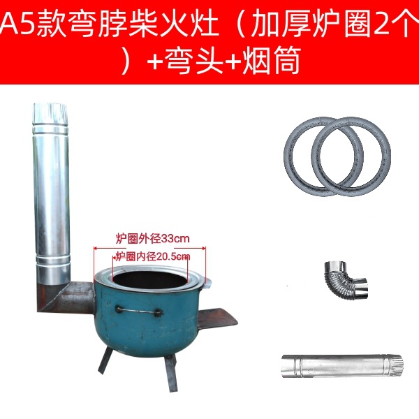 • 모델 A5: 곡선형 목재 난로 + 두꺼운 난로 고리(2개) + 팔꿈치 + 굴뚝