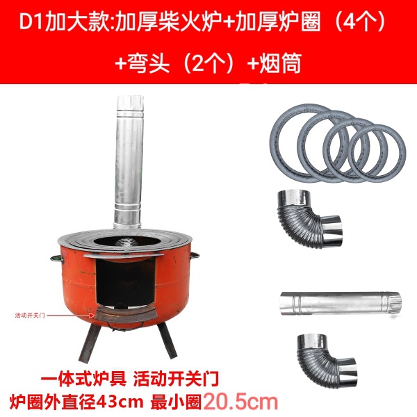 • D1 확대 모델: 두꺼운 장작 난로 + 두꺼운 난로 링(4개) + 팔꿈치(2) + 굴뚝