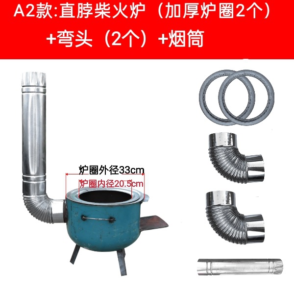 • A2 모델: 스트레이트 넥 장작 난로 + 두꺼운 난로 링(2개) + 엘보우(2개) + 굴뚝