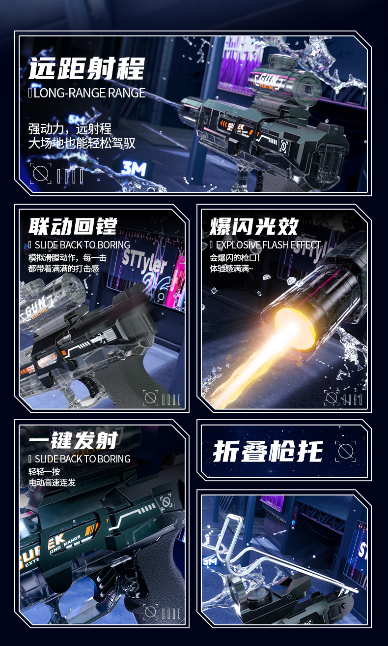 2025년 인기 모델 파이어 아이스 마우스 전기 물총 연결 고속 플래시 아이스 마우스 쿨 블랙 테크놀로지 물총스토어 가기