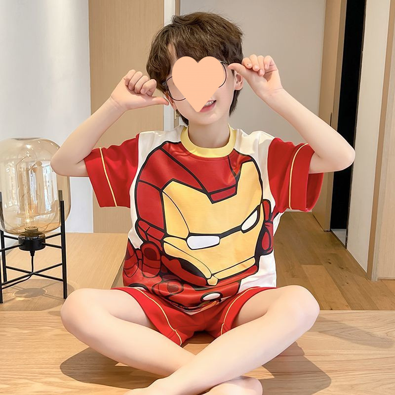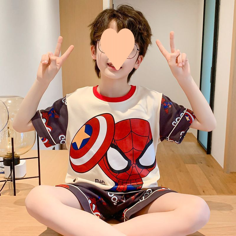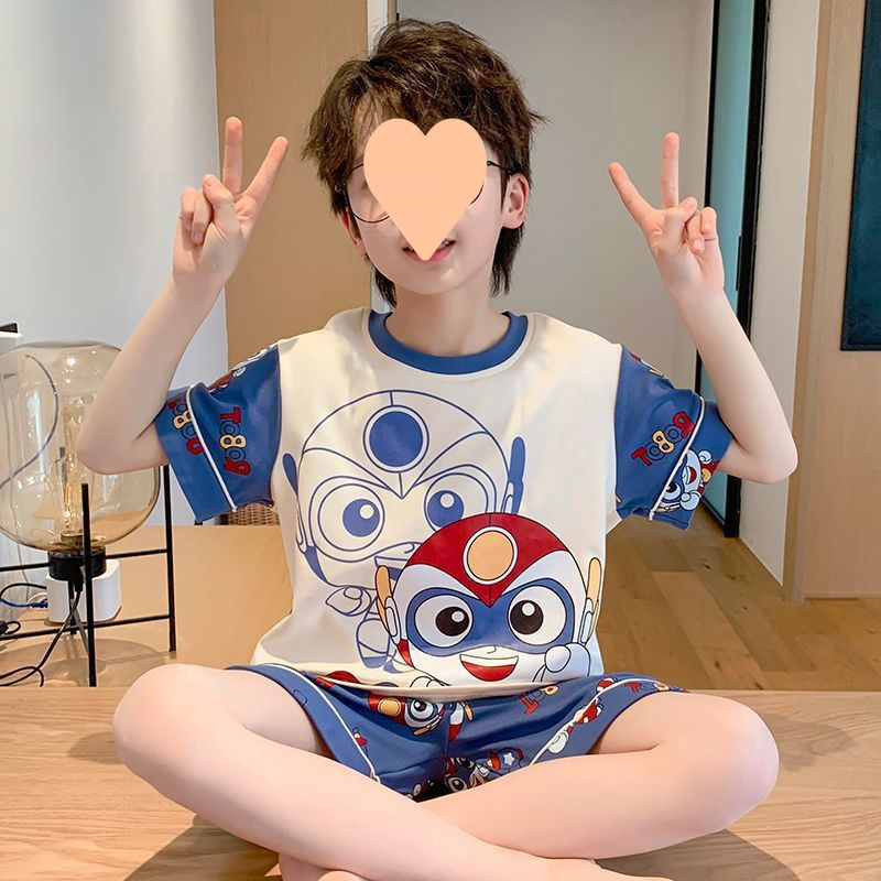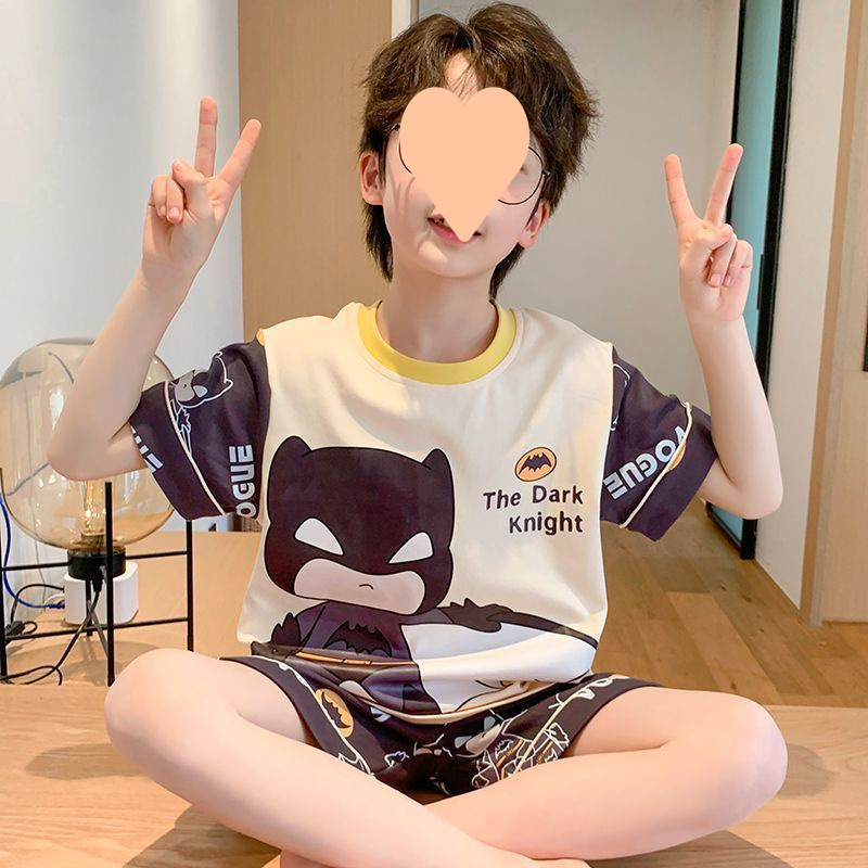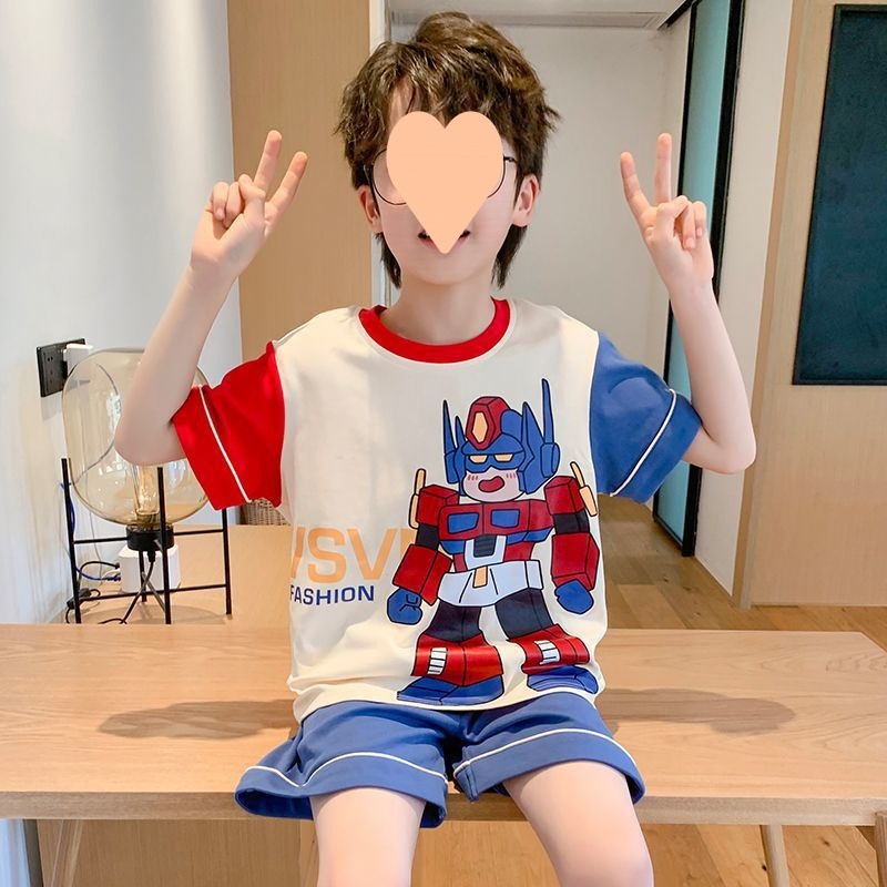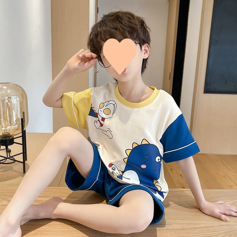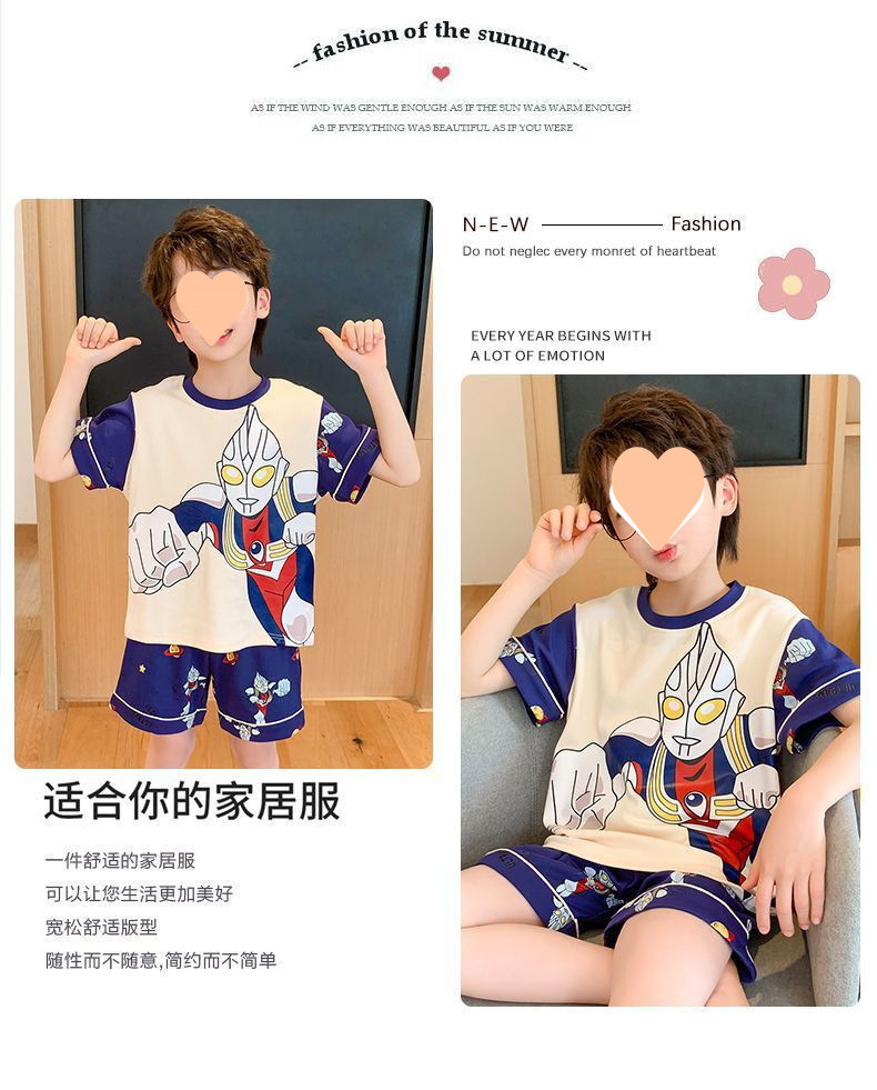 소년 잠옷 여름 순수 면화 반팔 얇은 소년 중대형 어린이 만화 울트라 맨 어린이 가정 의류 세트