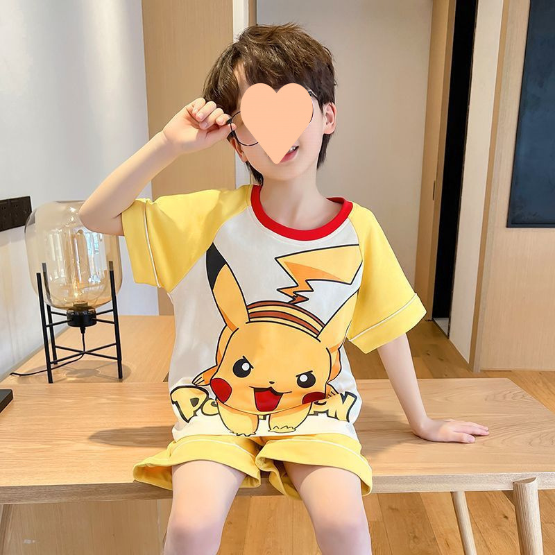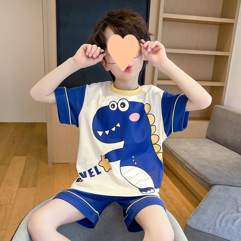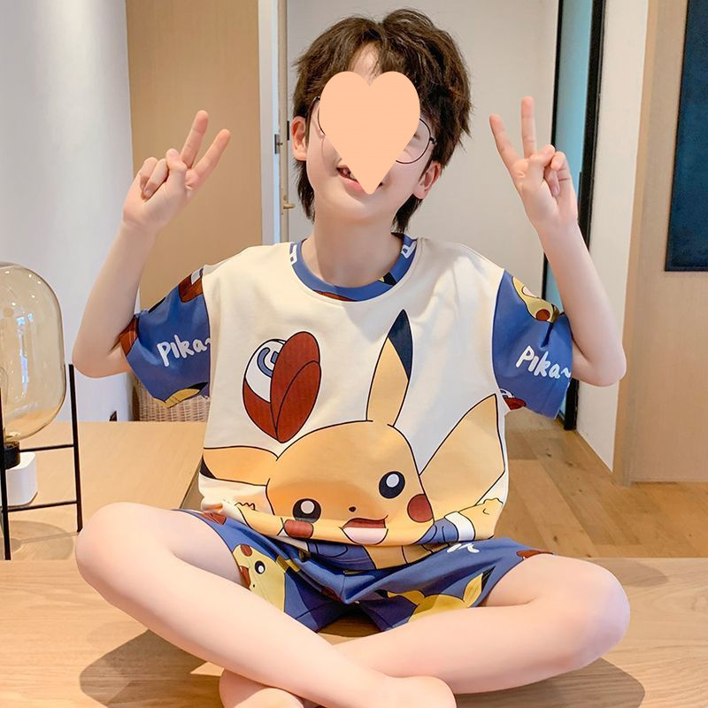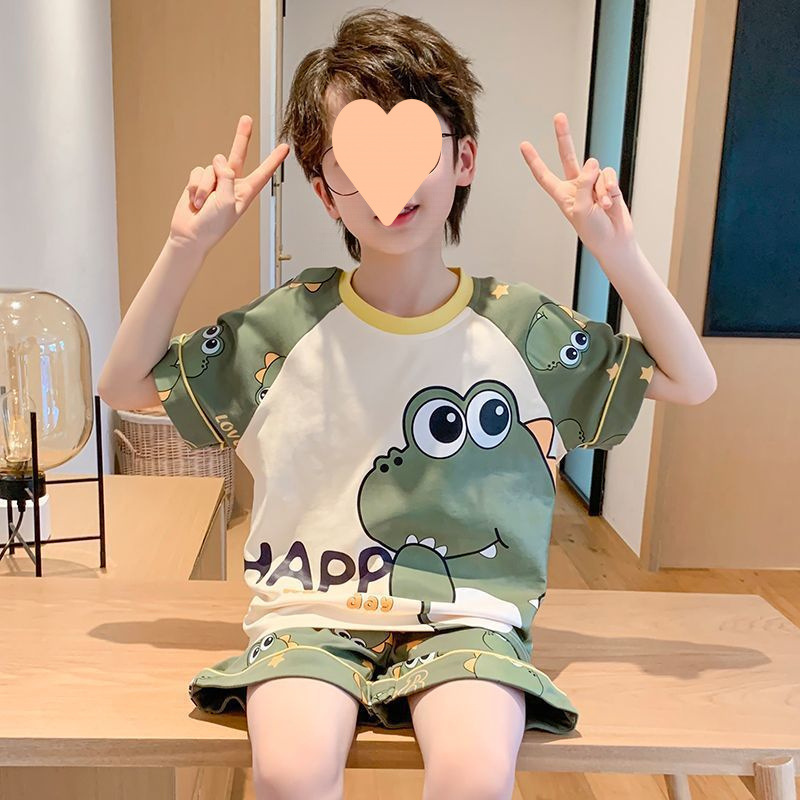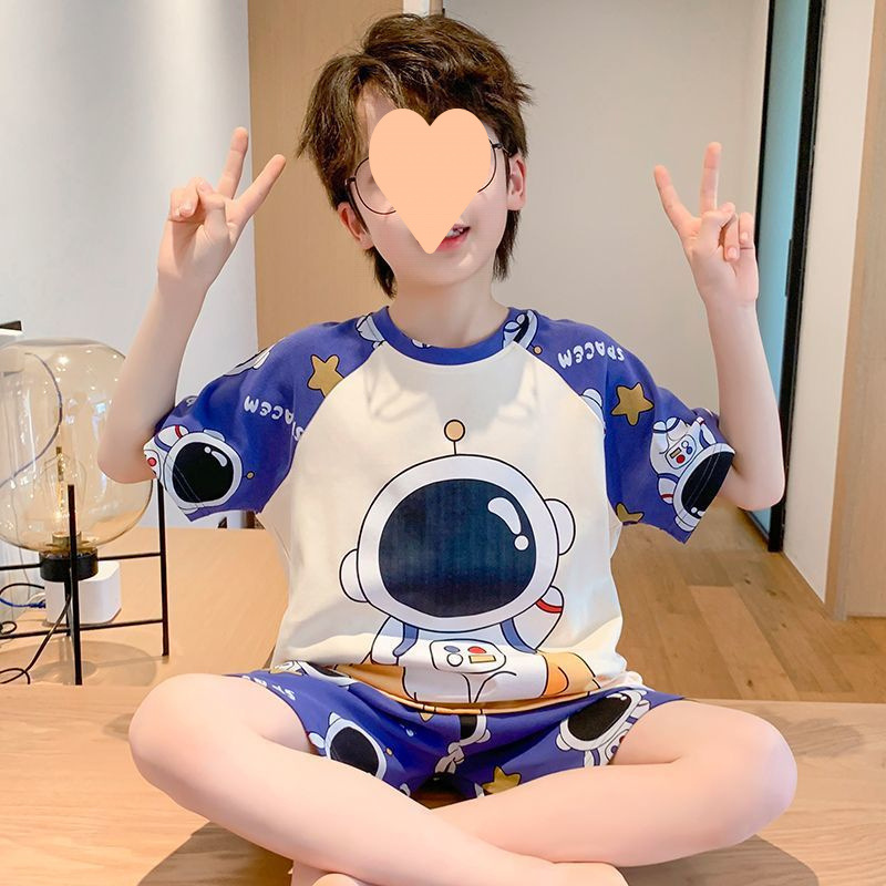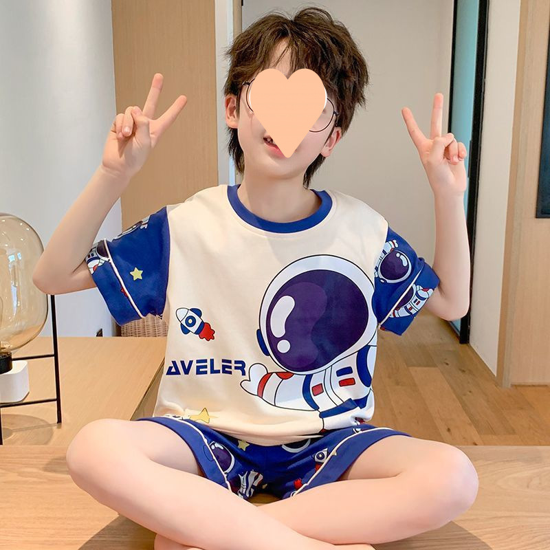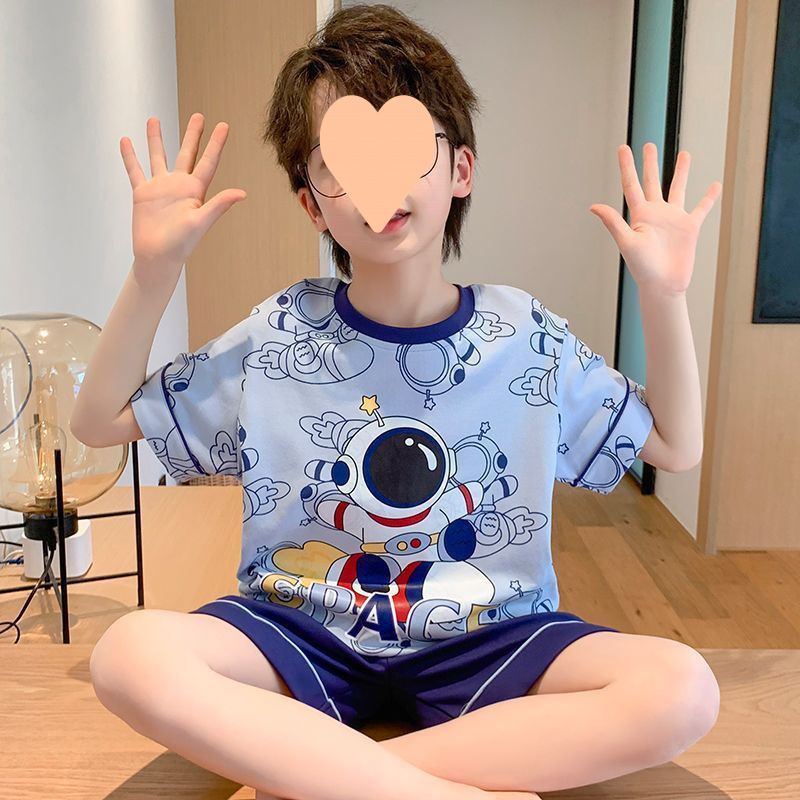 소년 잠옷 여름 순수 면화 반팔 얇은 소년 중대형 어린이 만화 울트라 맨 어린이 가정 의류 세트