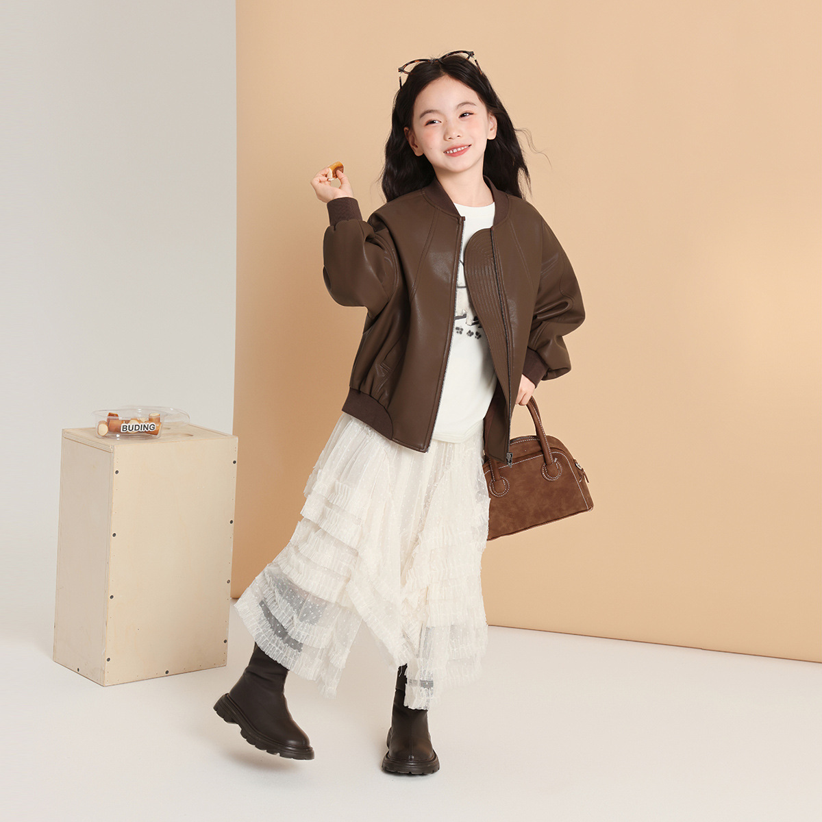 푸딩 하루 아동 재킷 2025 가을 유행 멋진 스타일 소녀 가죽 코트 실제 상업용 흰색 소녀 재킷 PU 가죽스토어 가기