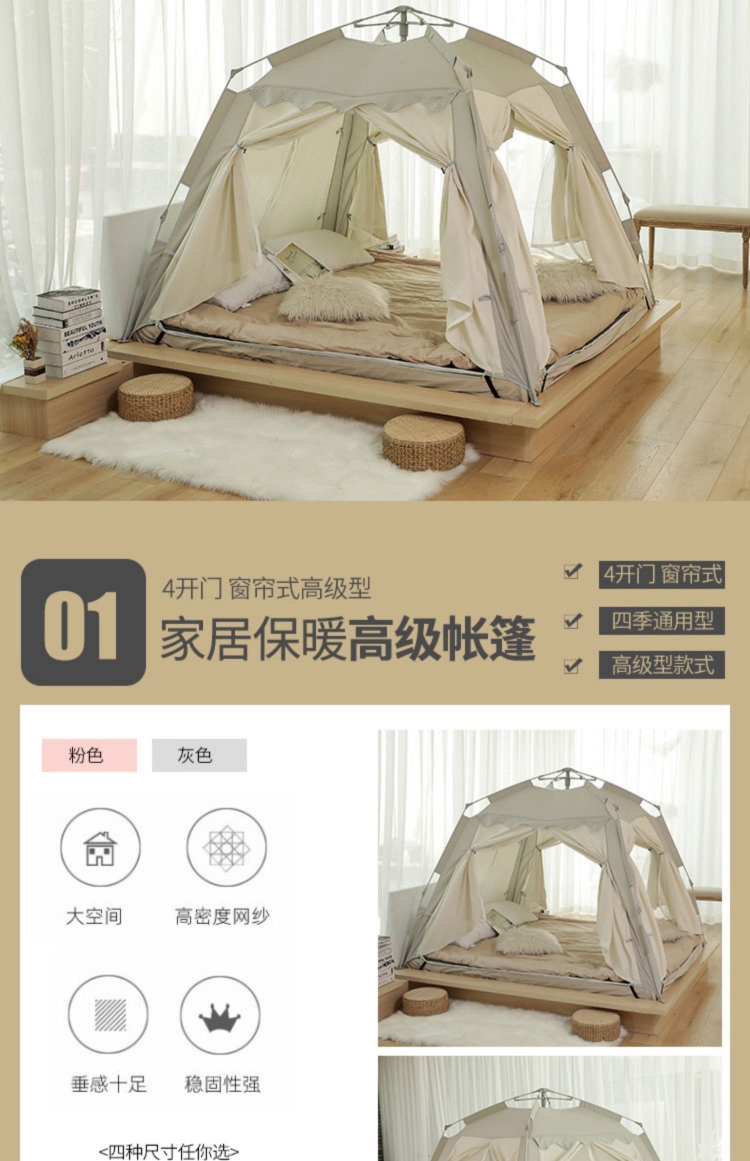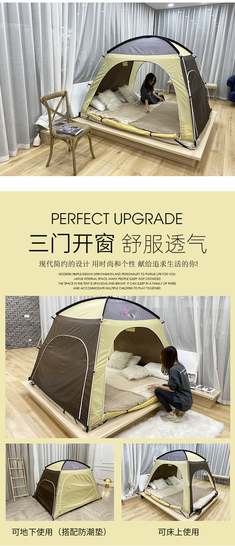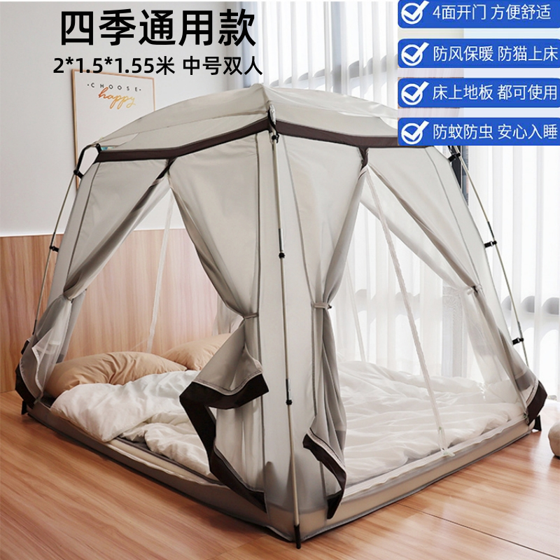 성인이 잠을 잘 수 있는 실내 텐트, 가정용 거실 바닥재, 성인용 이중 차광 접이식 통기성 모기 방지스토어 가기