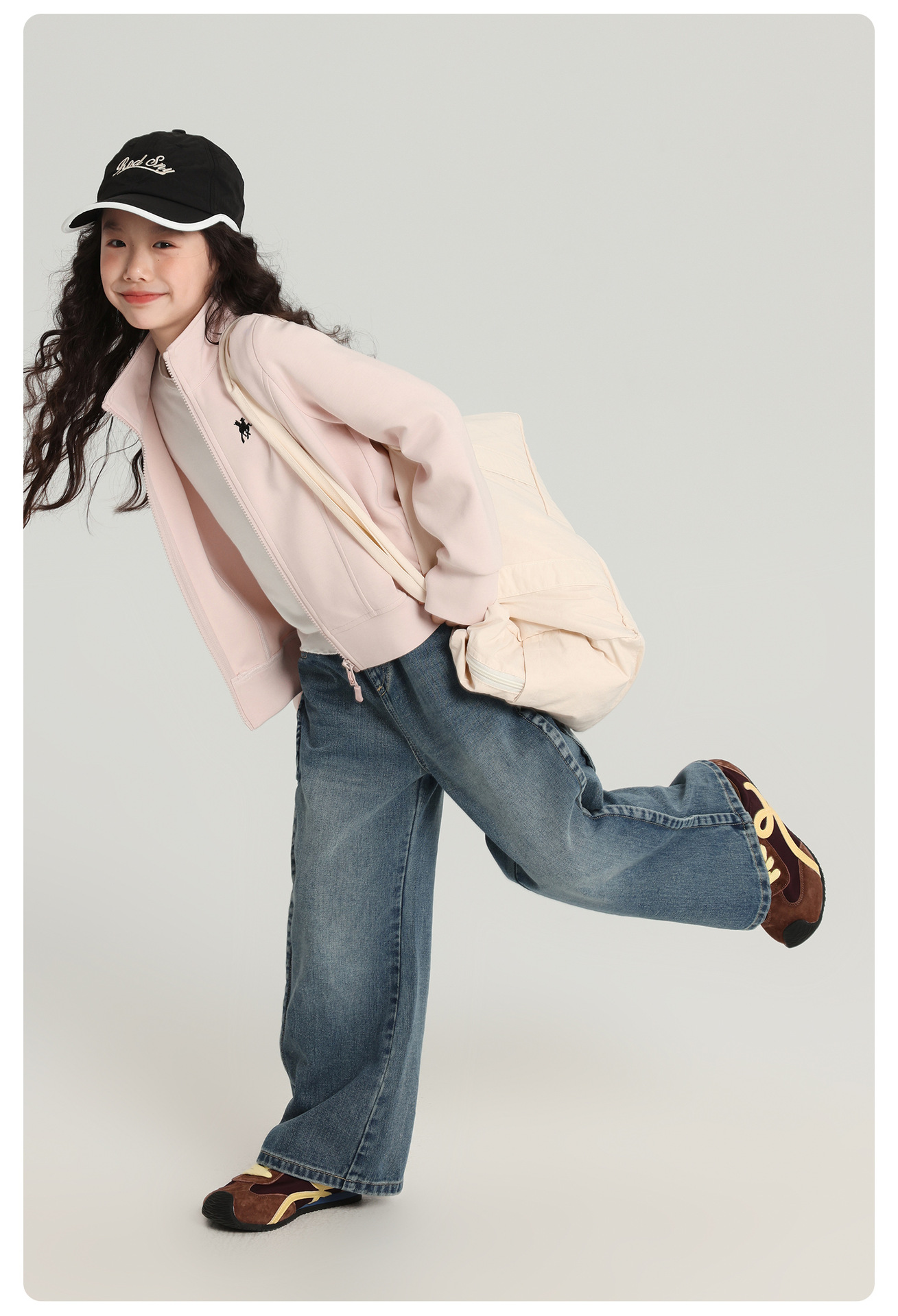 푸딩 하루 아동 바지 여아 청바지 2025 가을 신작 아동용 다용도 루즈 와이드 팬츠