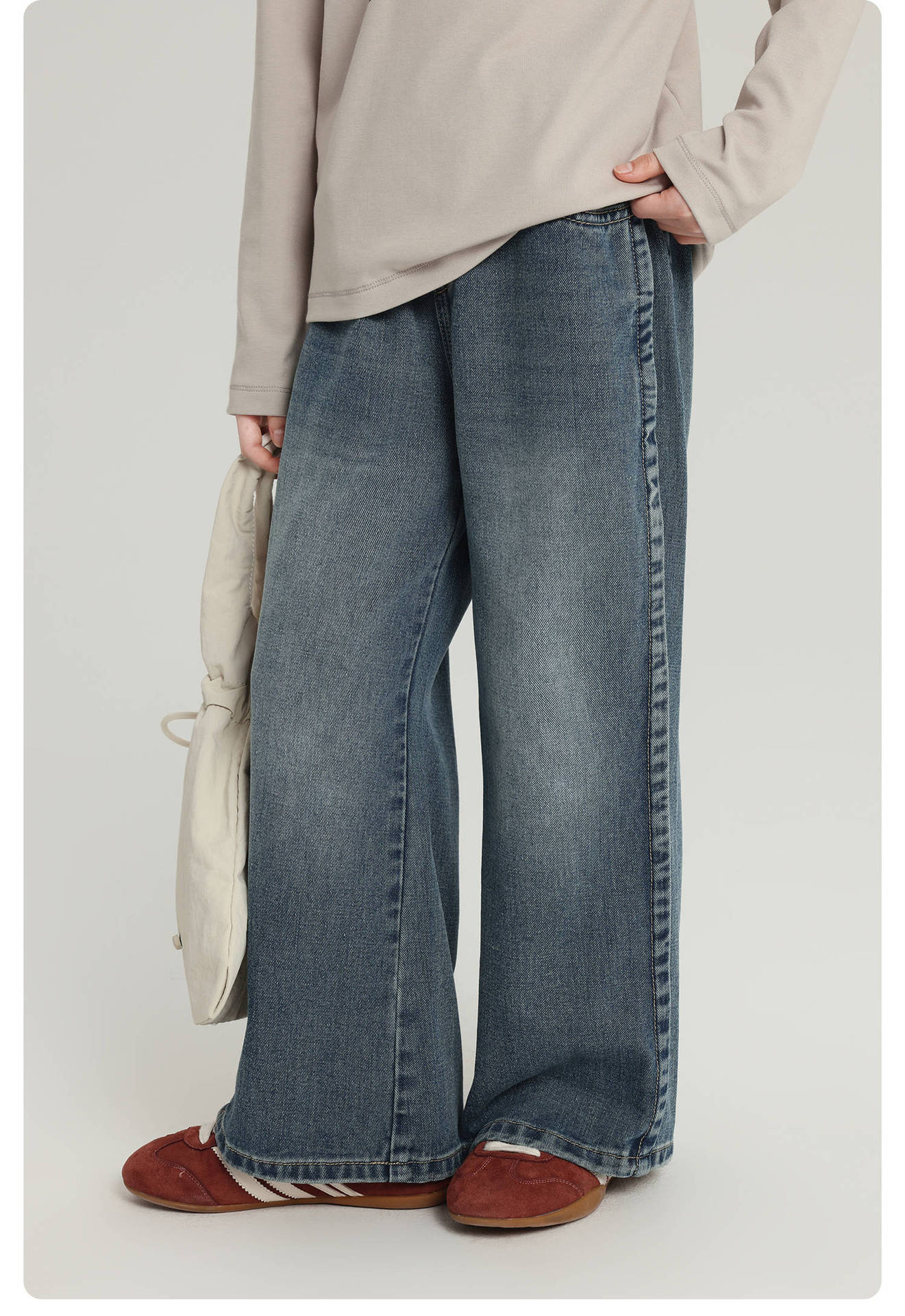 푸딩 하루 아동 바지 여아 청바지 2025 가을 신작 아동용 다용도 루즈 와이드 팬츠스토어 가기