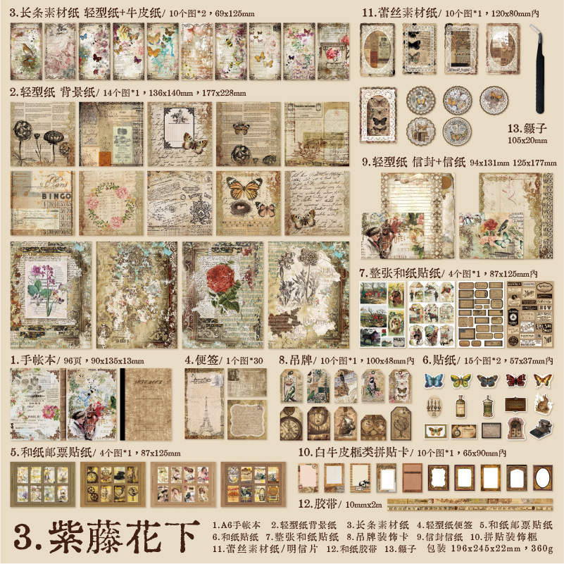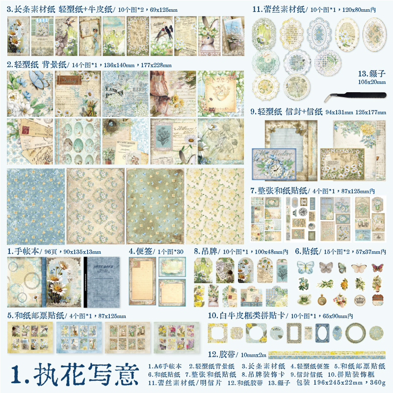 Yanji Garden Slow Time 시리즈 핸드북 선물 상자 세트 복고풍 소재 장식 콜라주 베이스 용지 4가지 스타일스토어 가기