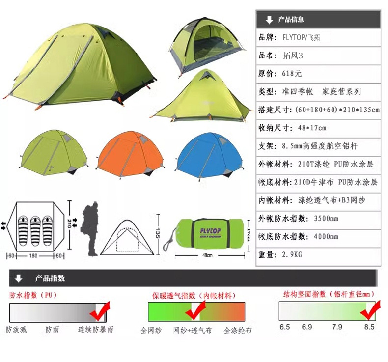 2~3인용 야외텐트, 캠핑, 방풍 및 방수, 전문가급 알루미늄 폴, 하이킹 및 등산텐트, 야외 레저스토어 가기