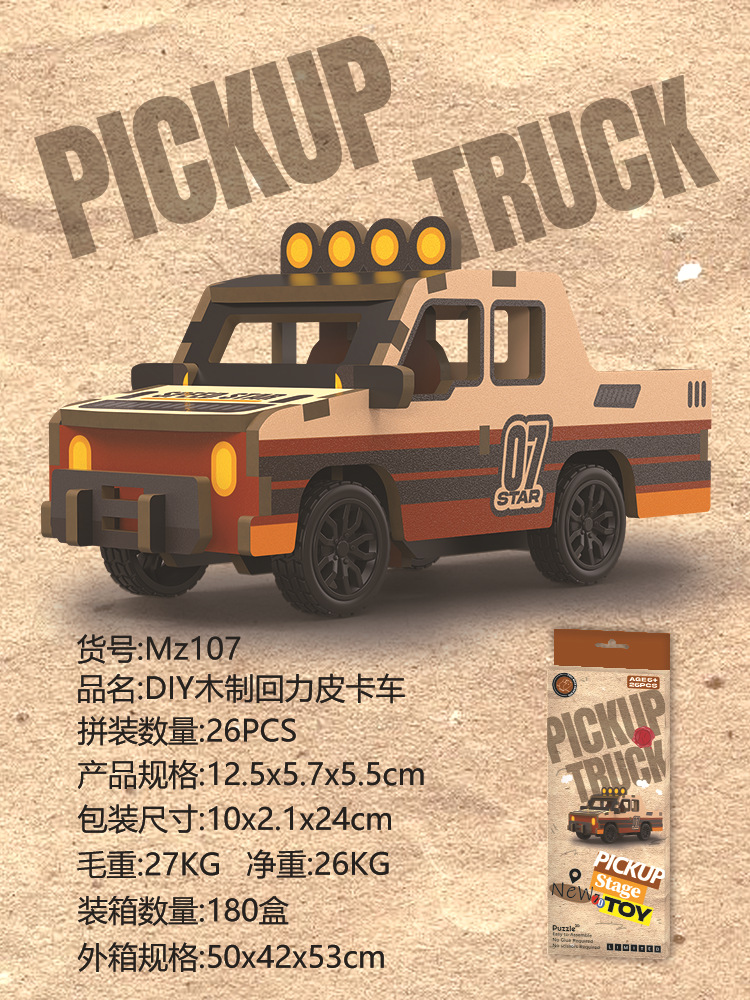 국경 간 나무 풀백 자동차 3D 퍼즐 교육 수제 제품 어린이 소년 장난감 3 차원 모델 선물 엔지니어링 차량
