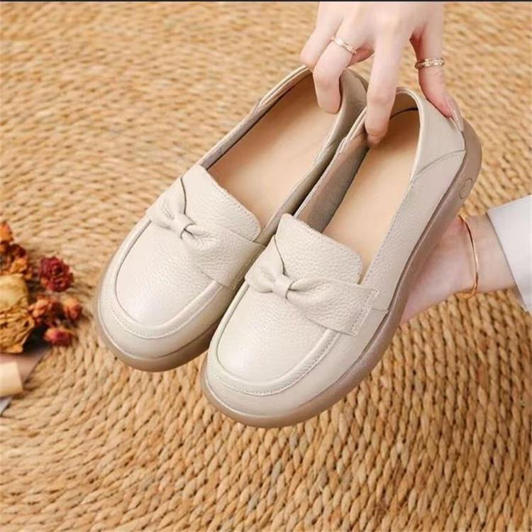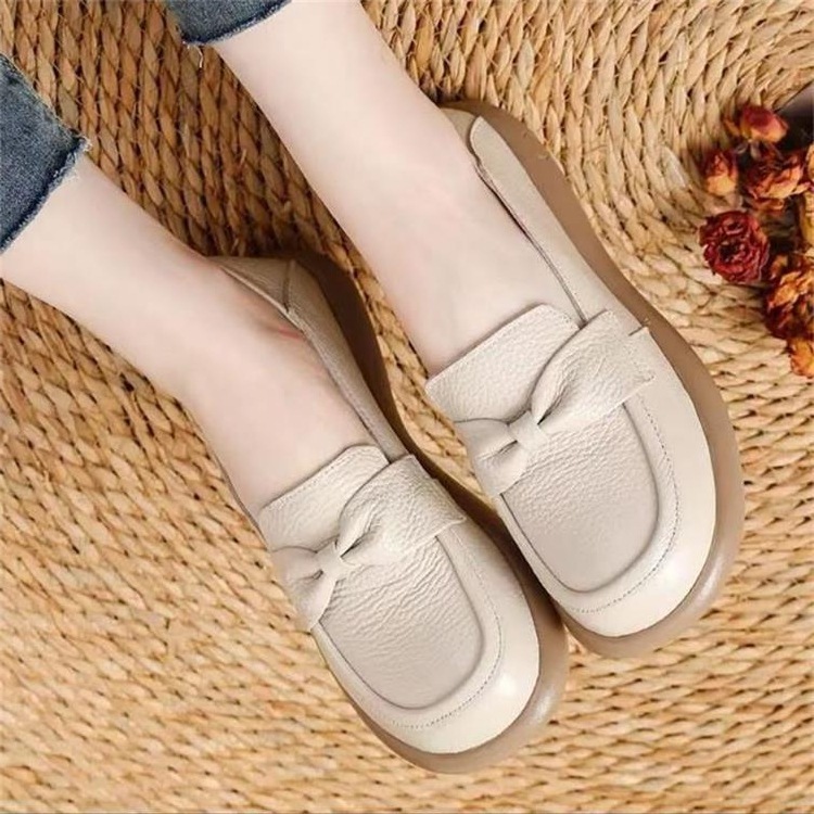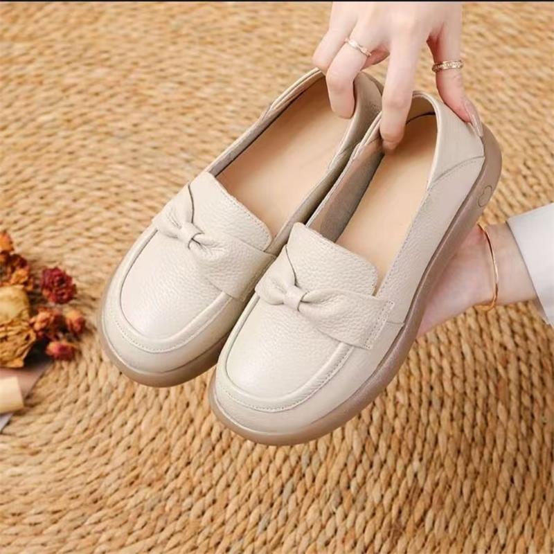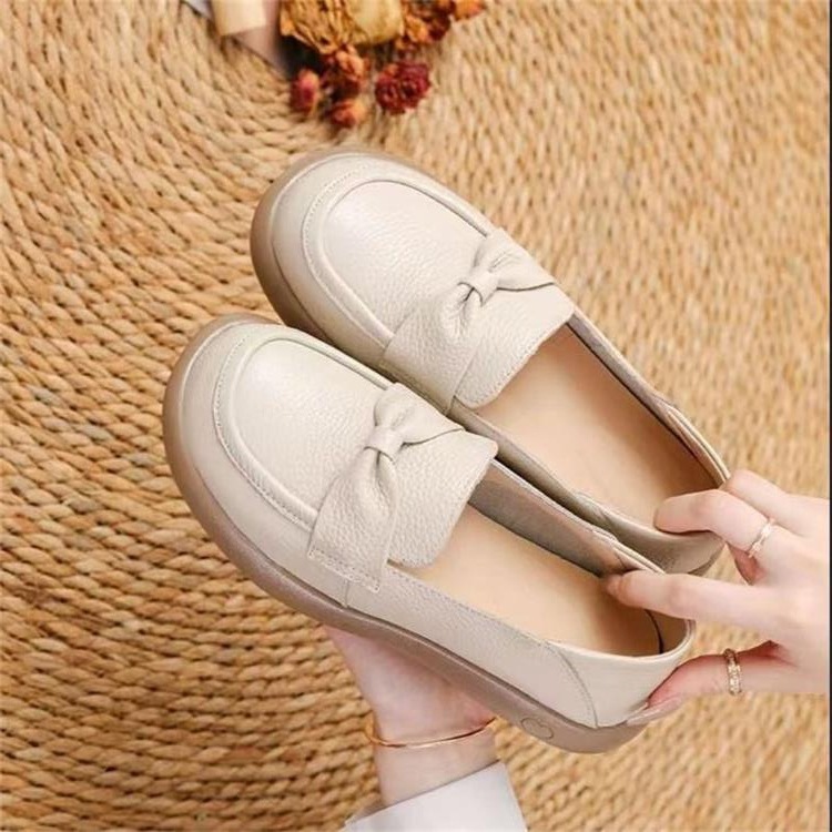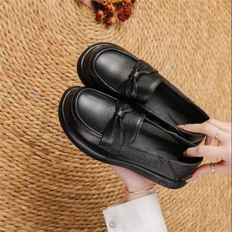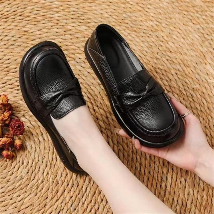 슬립온 로퍼 2025 봄, 가을 미끄럼 방지 간호사 신발 여성 미끄럼 방지 어머니 신발 중년 및 노인 직장용 가죽 신발