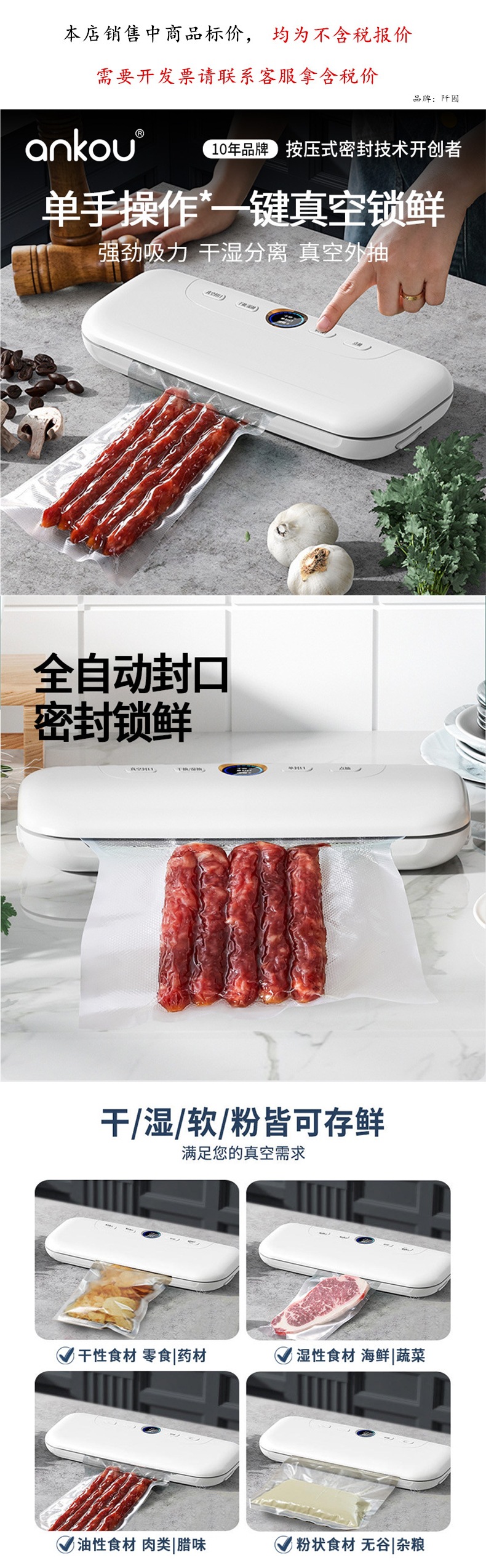 Ankou 진공 밀봉 기계 소형 가정용 식품 포장 완전 자동 진공 밀봉 기계 비 선택 가방 플라스틱 밀봉 기계스토어 가기