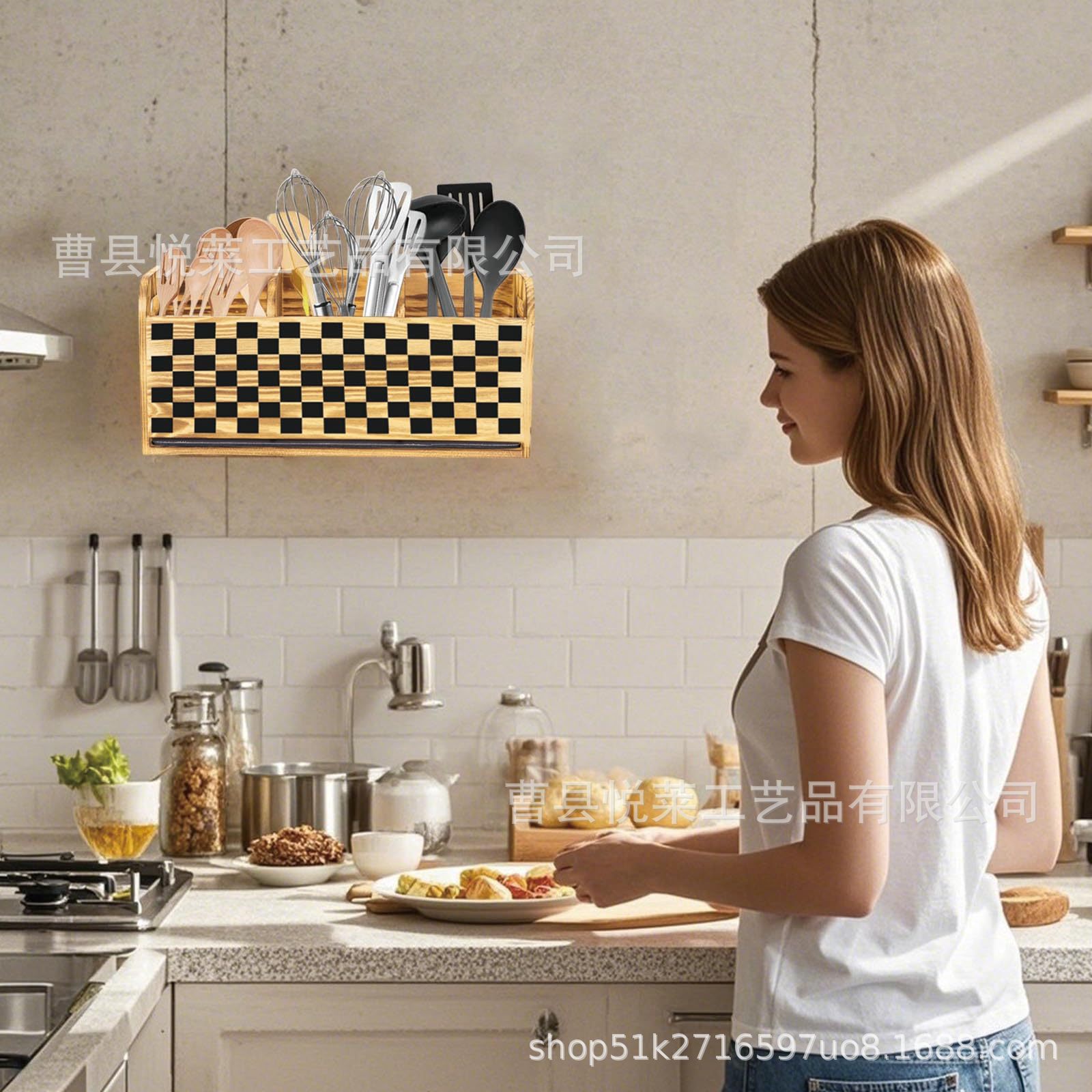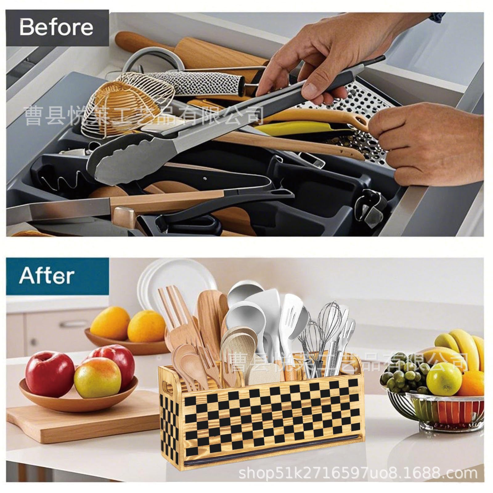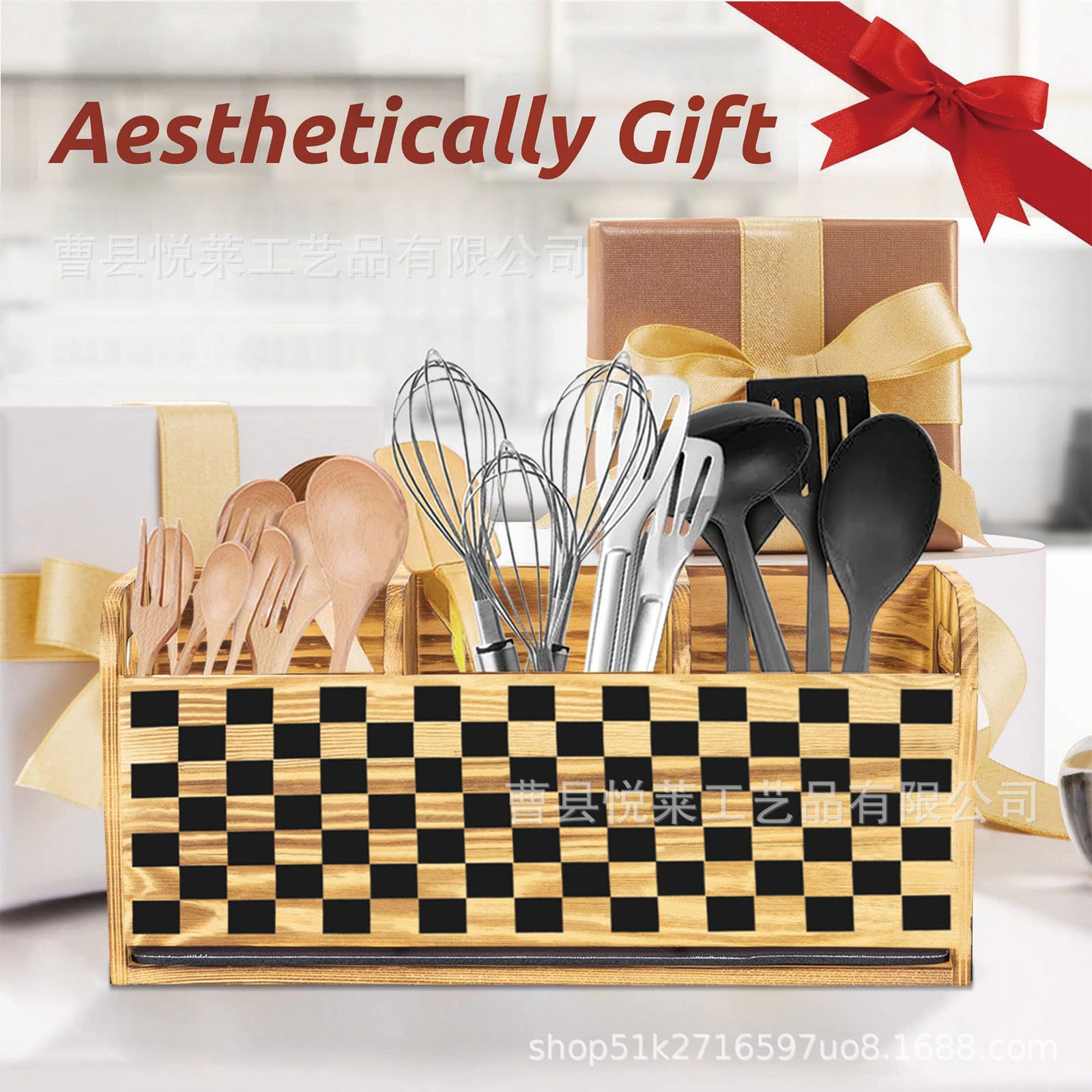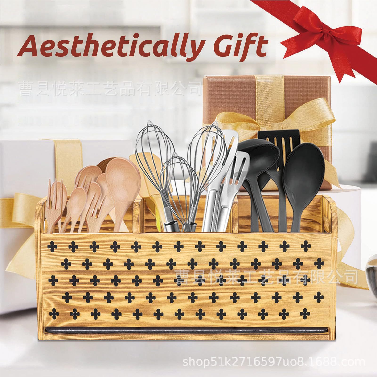 나무 식기 보관 상자 주방 조리대 젓가락 칼 포크 스푼 보관 상자 주걱 분리 정리 상자 도시락 상자스토어 가기