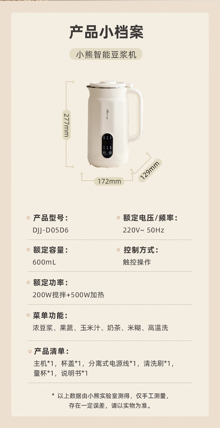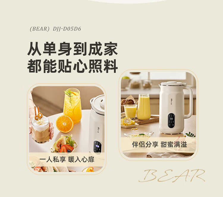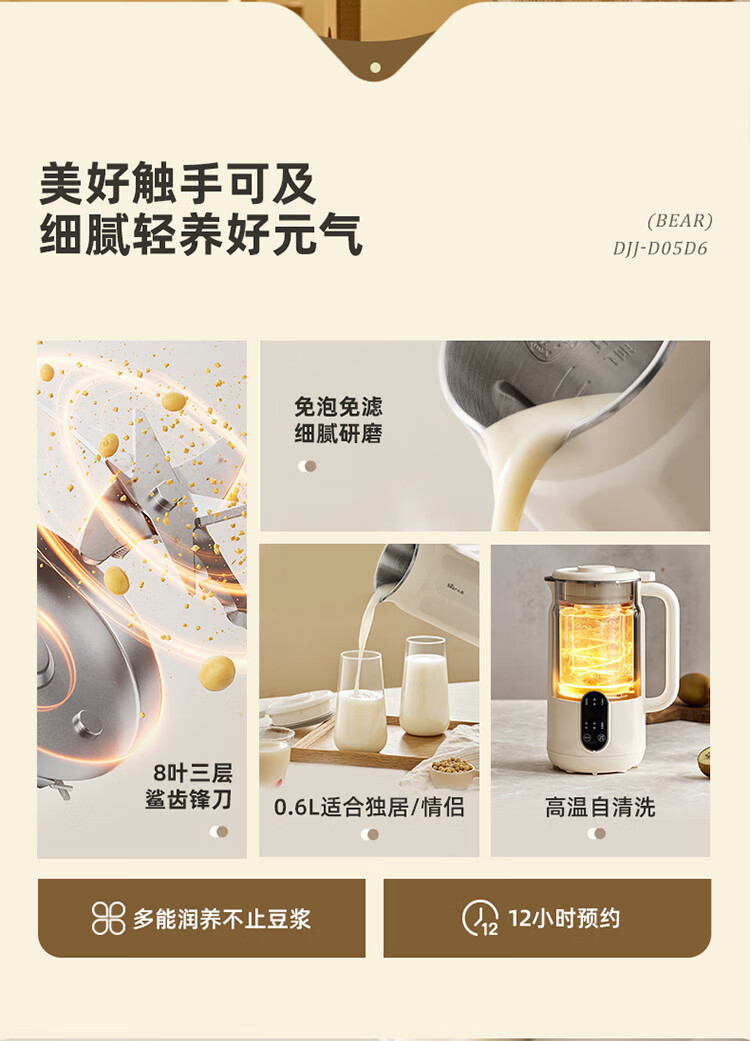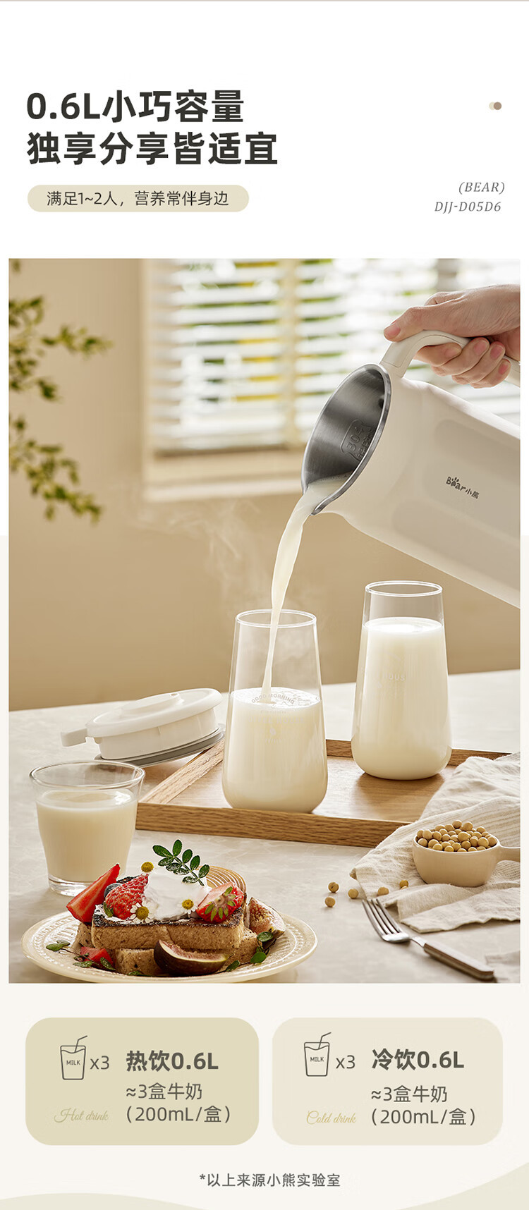 곰 두유 기계 DJJ-D05D6 가정용 소형 완전 자동 미니 벽 파괴 필터 프리 요리 1~2인용 0.6리터