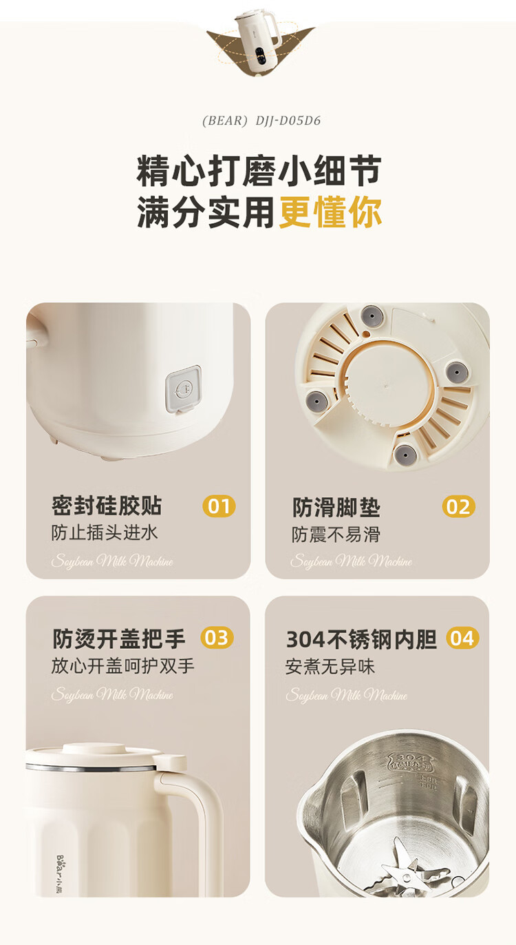 곰 두유 기계 DJJ-D05D6 가정용 소형 완전 자동 미니 벽 파괴 필터 프리 요리 1~2인용 0.6리터스토어 가기