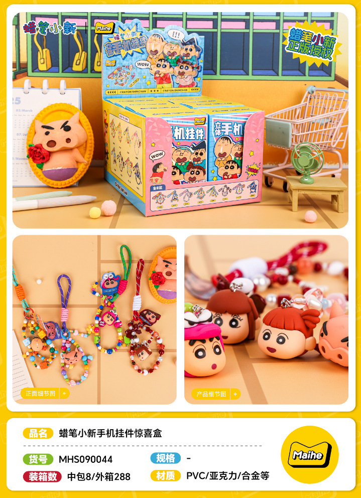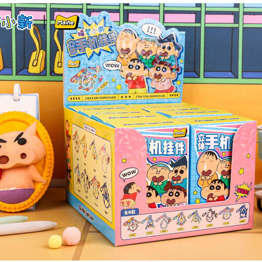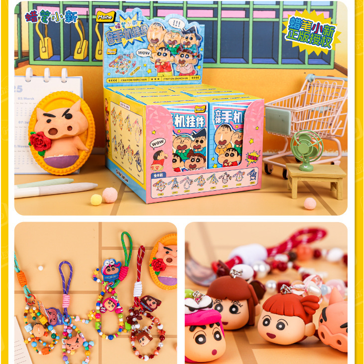 정품 크레용 신짱 휴대 전화 펜던트 블라인드 박스 비즈 팔찌 학생 가방 장식 키 체인 자동차 펜던트스토어 가기