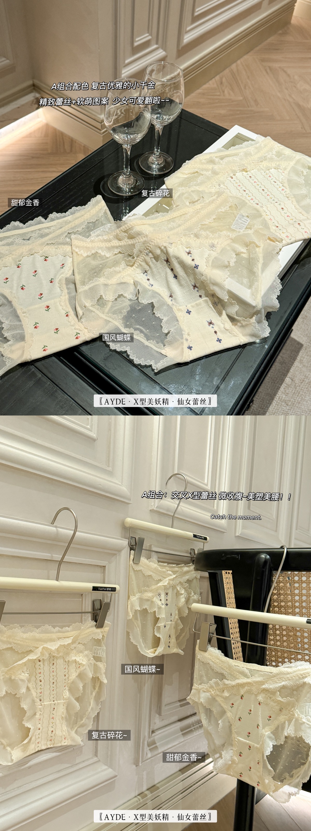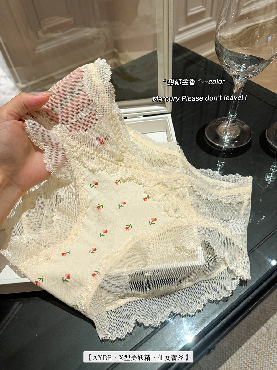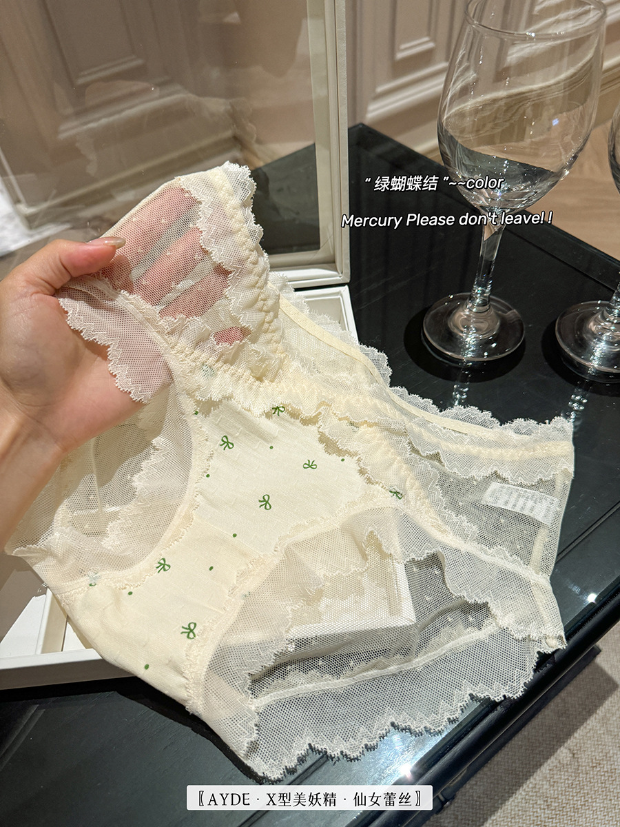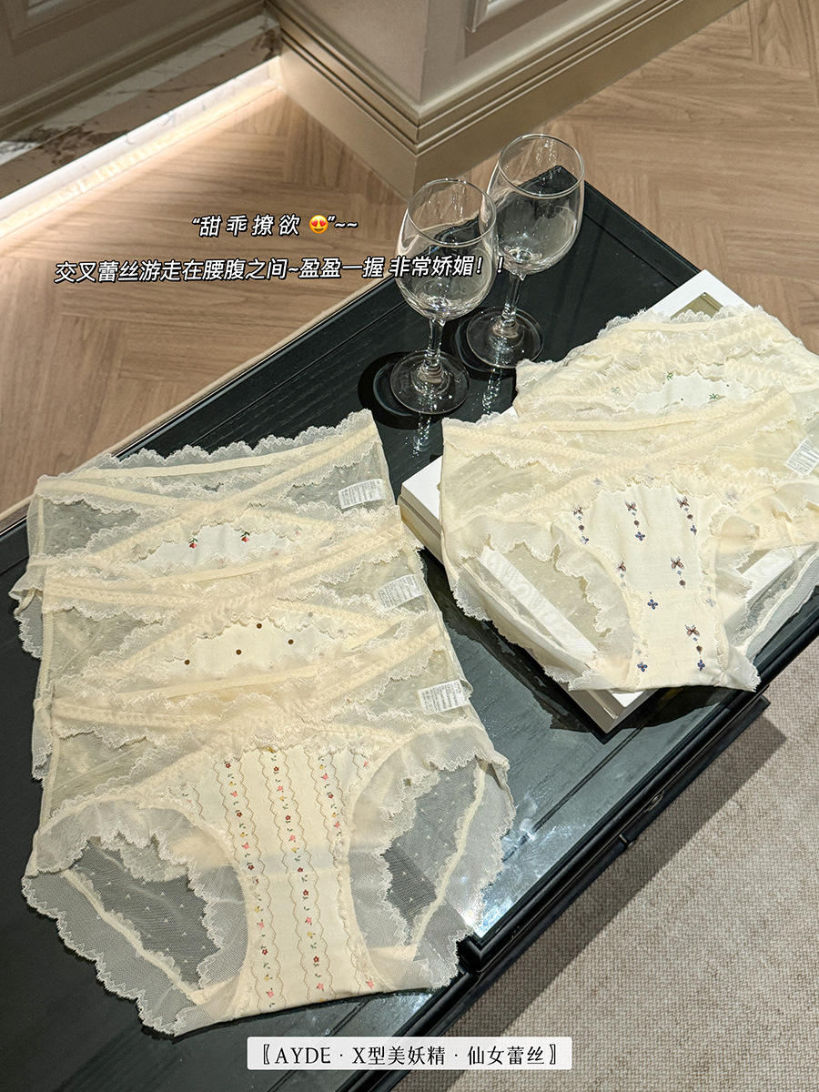 여름 새로운 X 자형 아름다운 허리 얼음 실크 레이스 중공 통기성 여성 속옷 섹시한 프랑스 중간 허리 삼각형 반바지