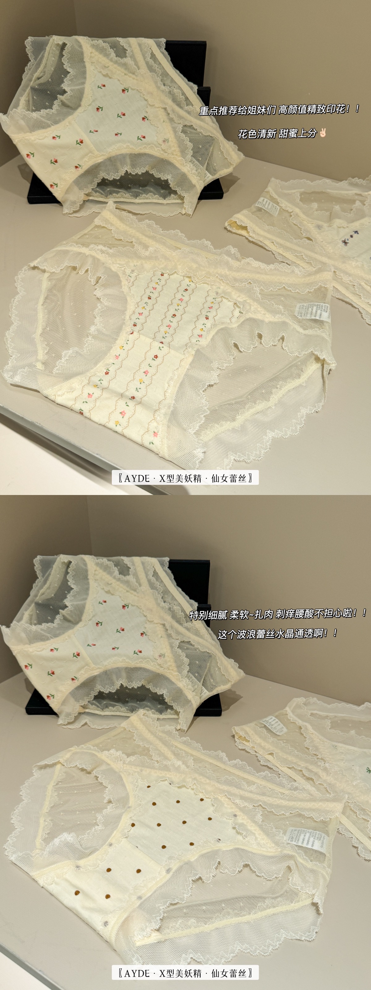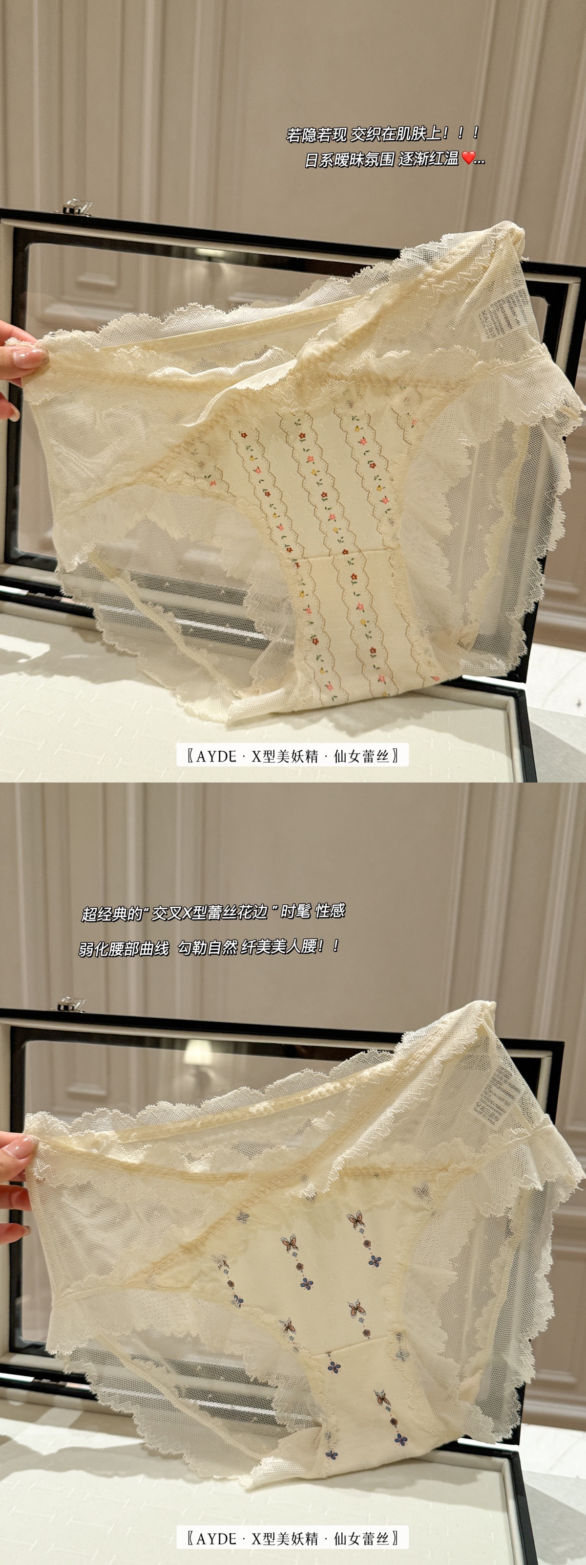 여름 새로운 X 자형 아름다운 허리 얼음 실크 레이스 중공 통기성 여성 속옷 섹시한 프랑스 중간 허리 삼각형 반바지스토어 가기