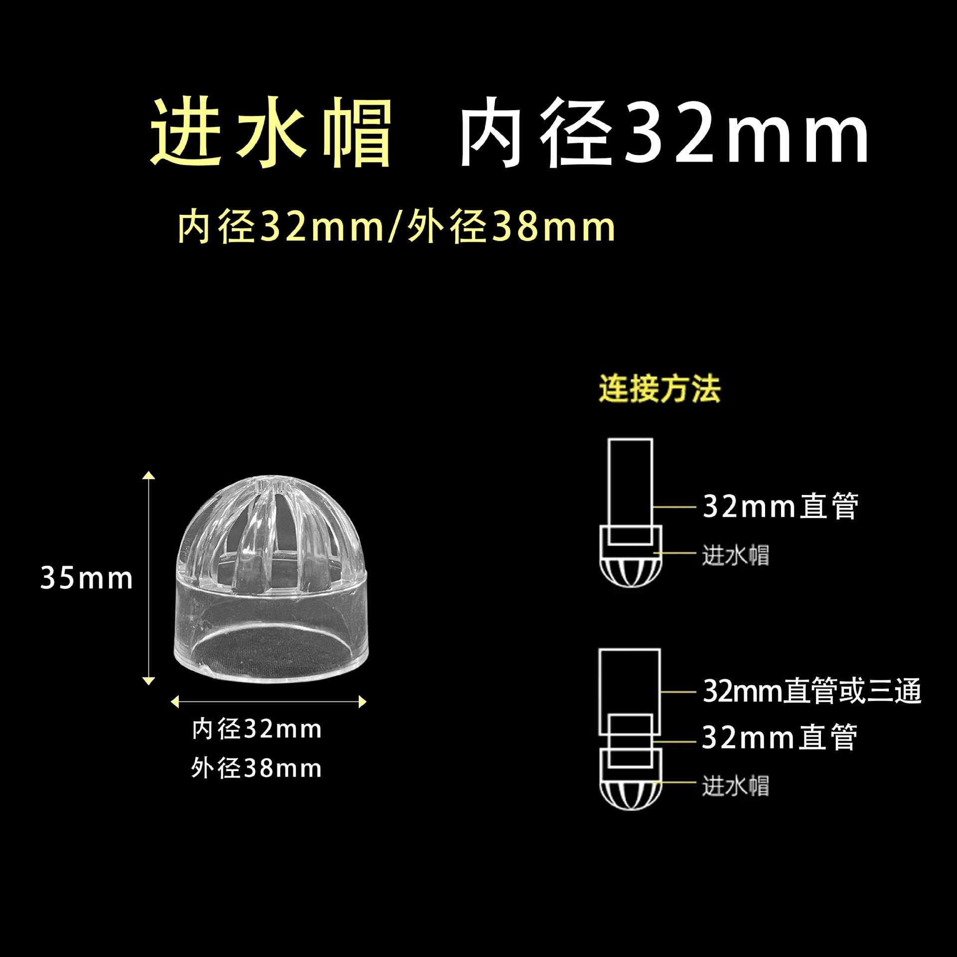 • 투명한 물 유입 캡 32mm