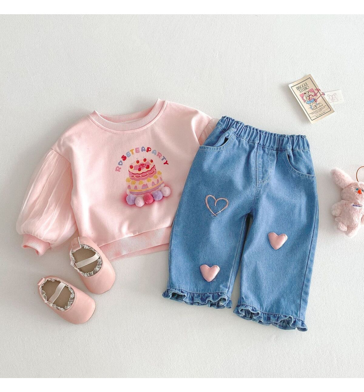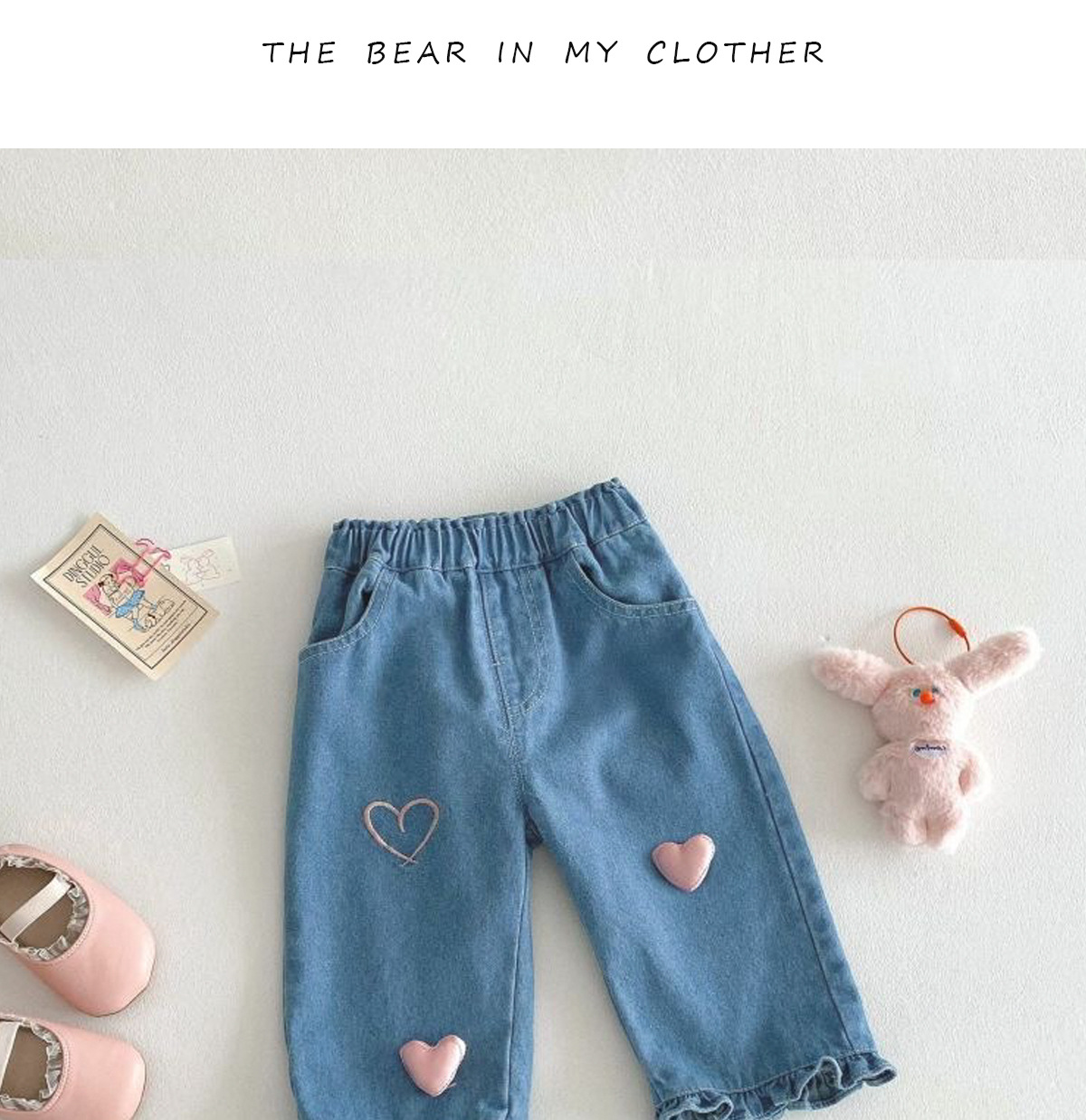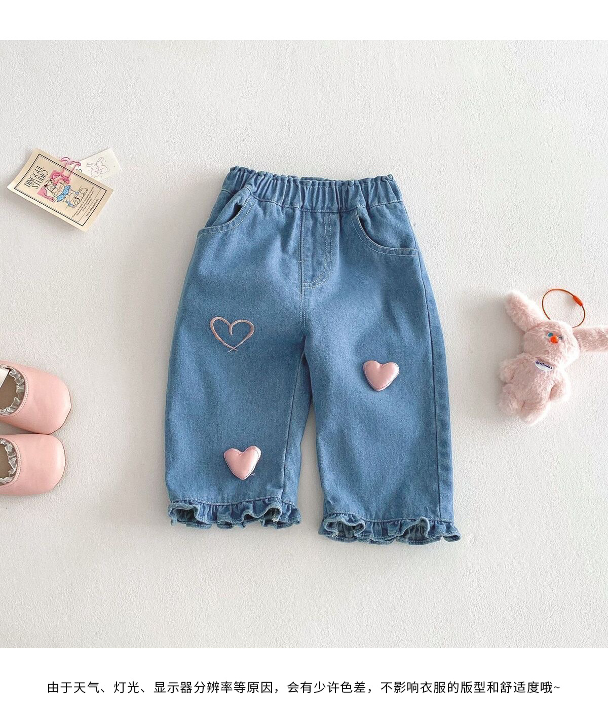 한국 스타일 아동복 소녀 사랑 청바지 가을 새로운 스타일 소녀 와이드 레그 스트레이트 바지 어린이 한국 스타일 느슨한 바지
