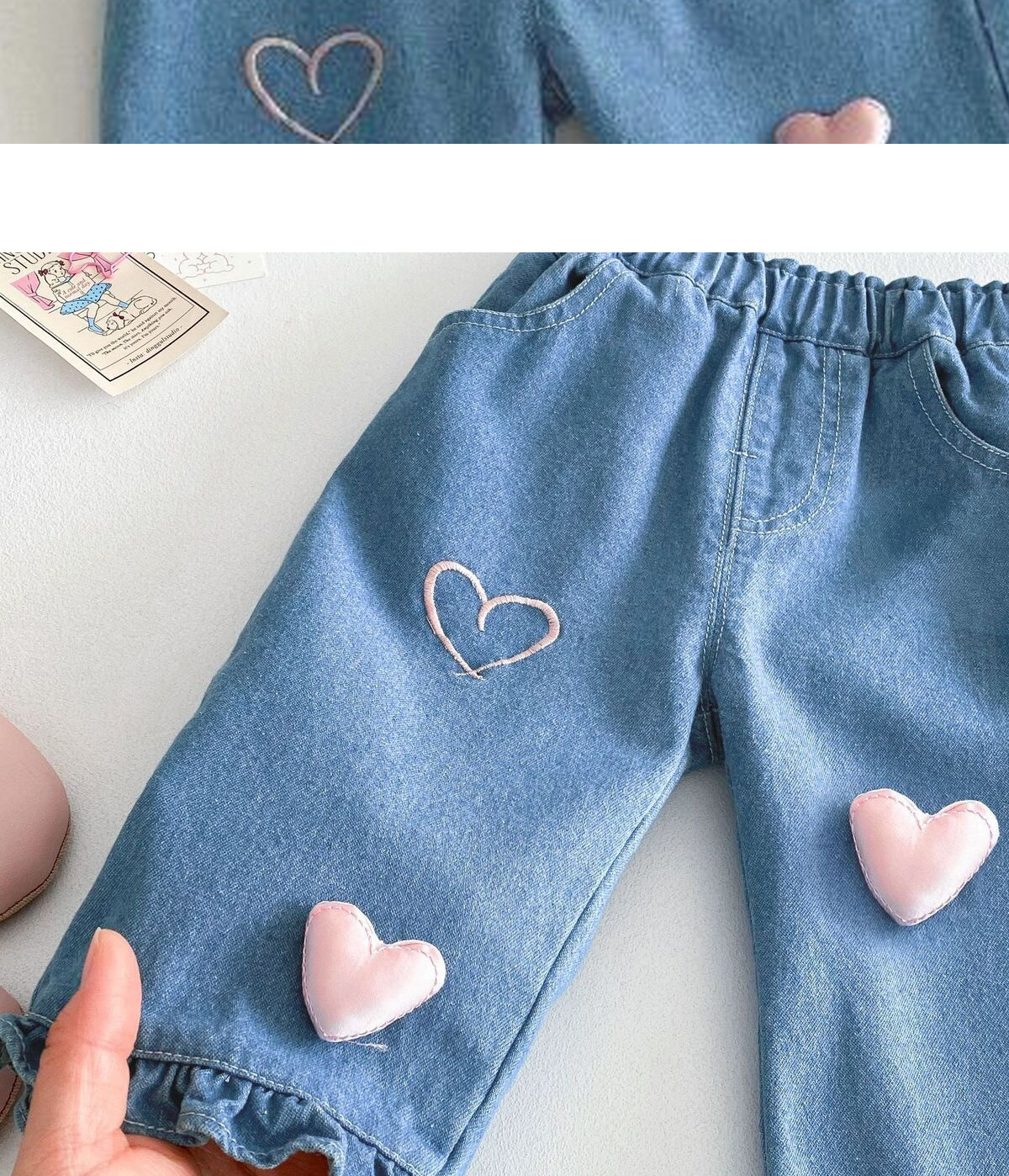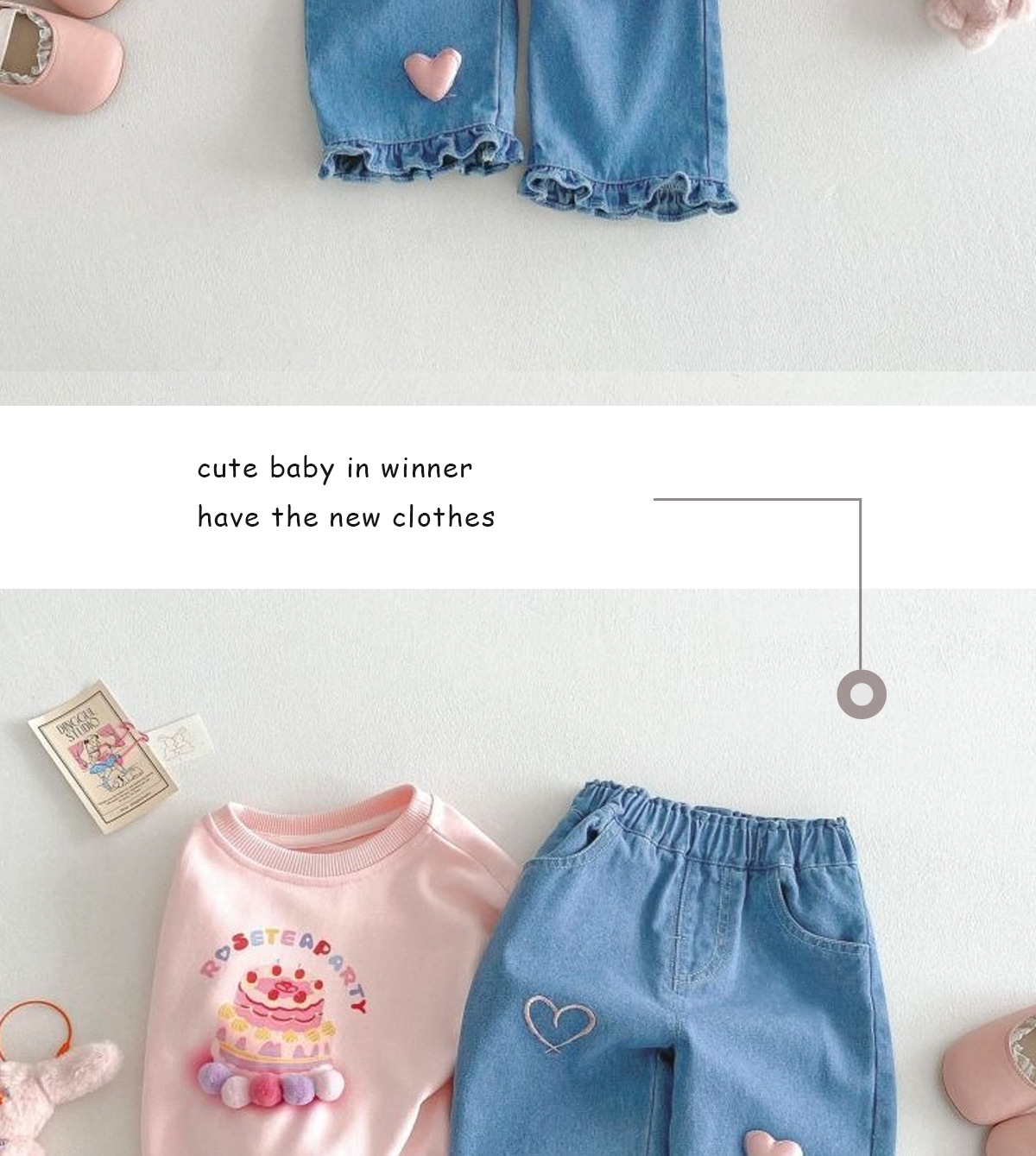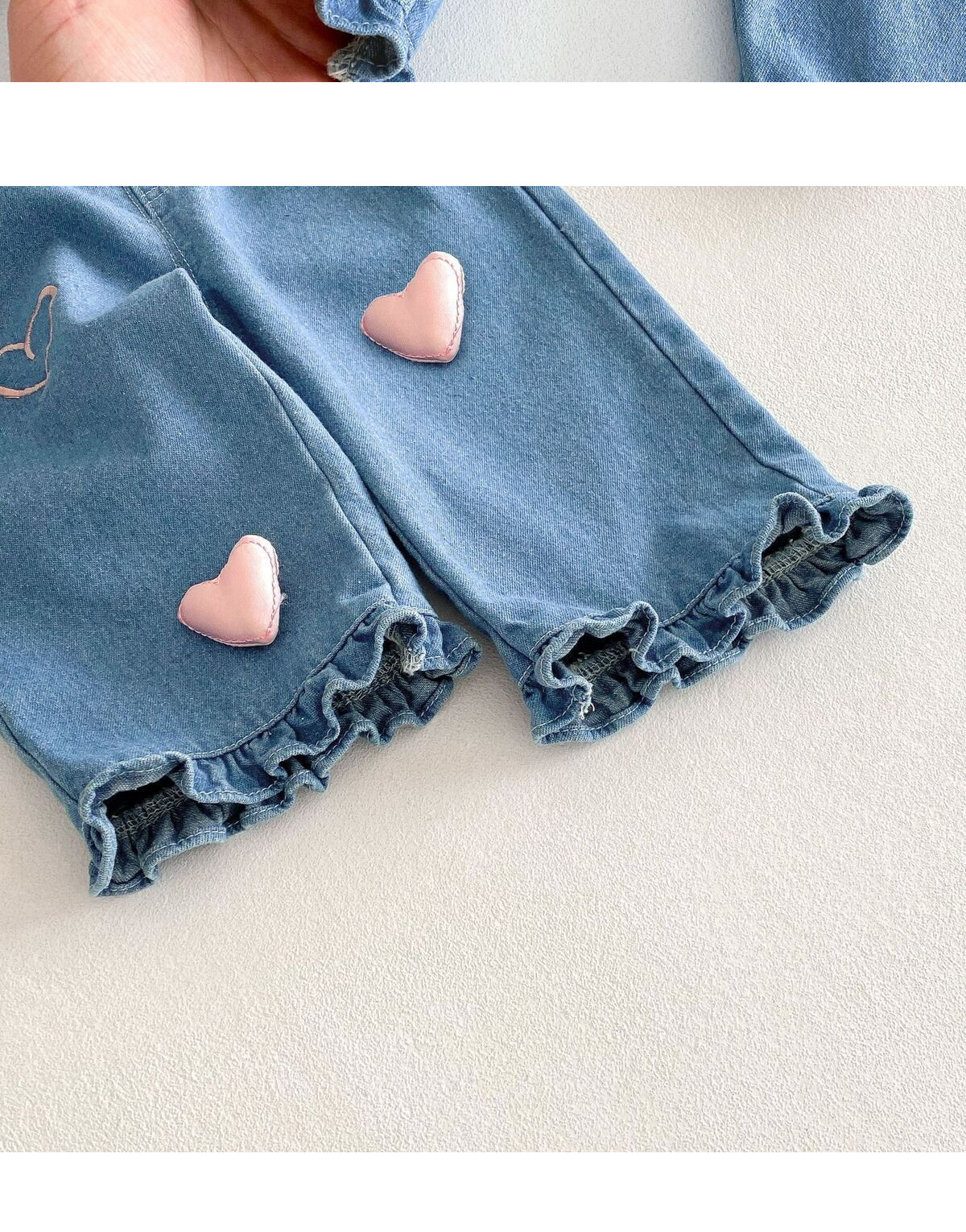 한국 스타일 아동복 소녀 사랑 청바지 가을 새로운 스타일 소녀 와이드 레그 스트레이트 바지 어린이 한국 스타일 느슨한 바지