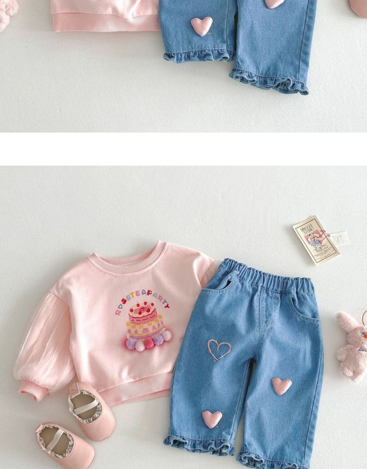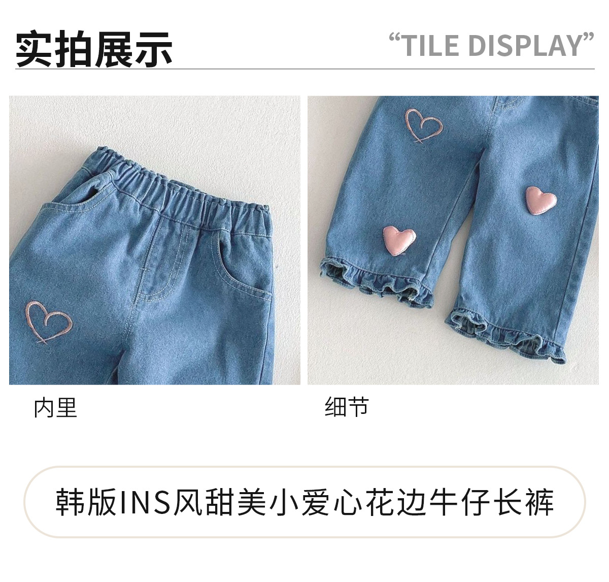 한국 스타일 아동복 소녀 사랑 청바지 가을 새로운 스타일 소녀 와이드 레그 스트레이트 바지 어린이 한국 스타일 느슨한 바지스토어 가기
